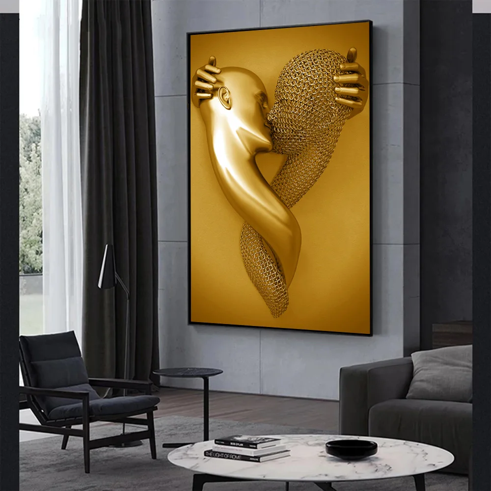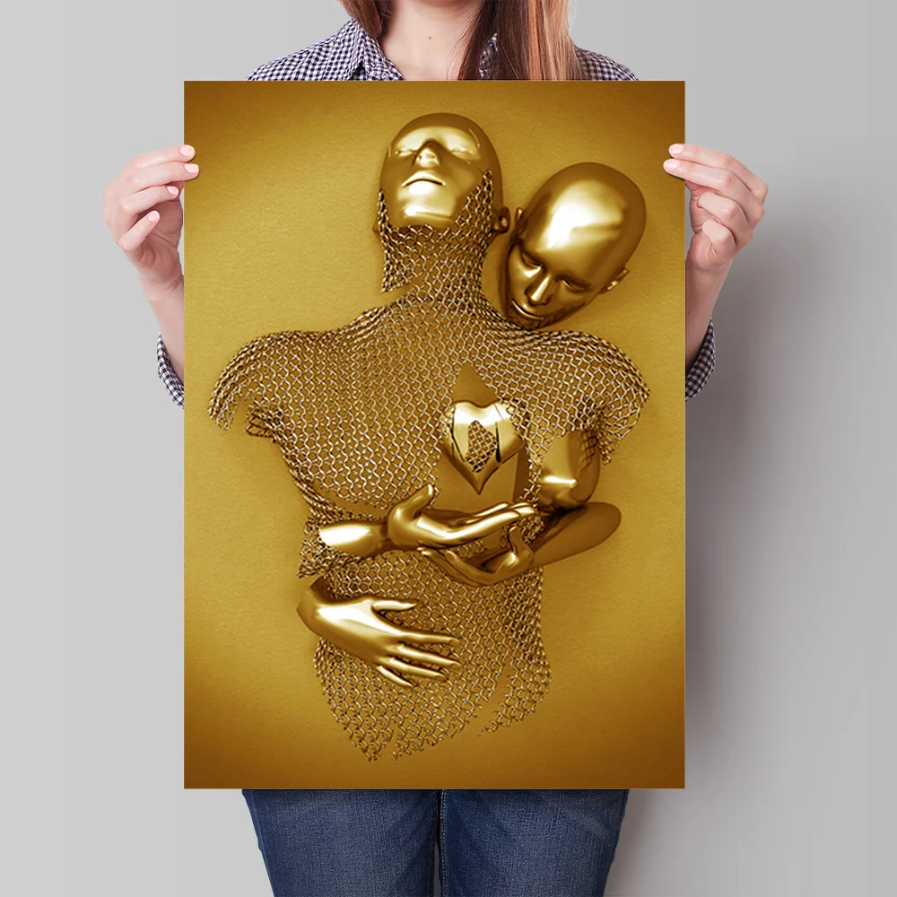 Металлическая фигурка, статуя, холст, живопись, романтические абстрактные постеры и печать, настенные художественные картины для гостиной, украшение для дома