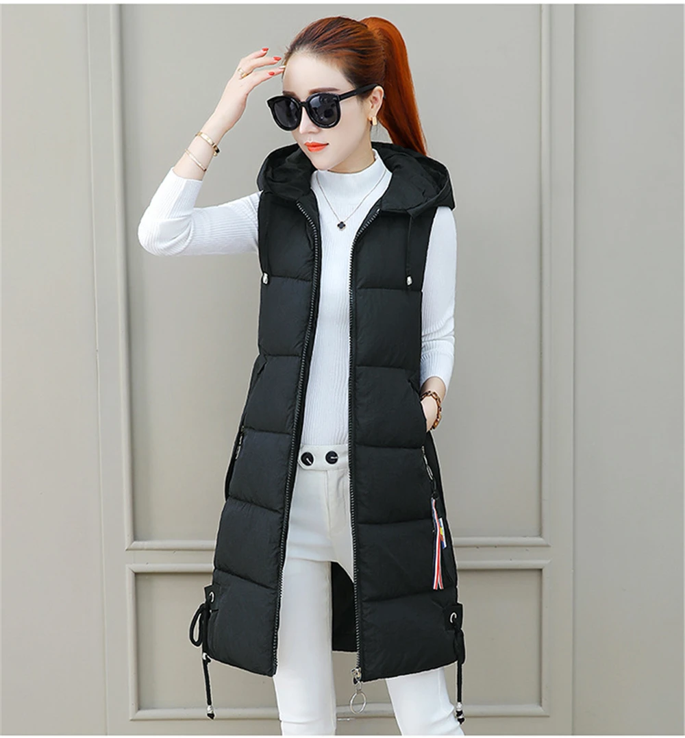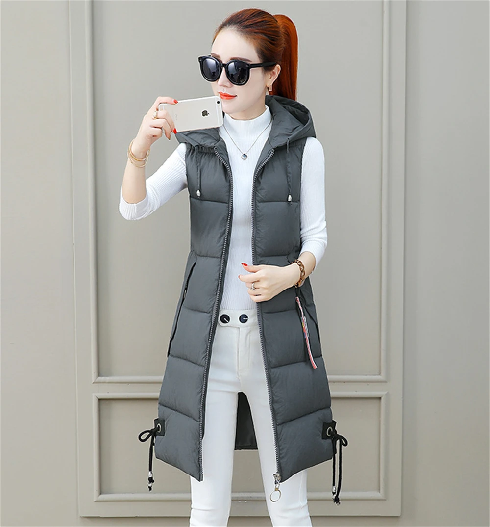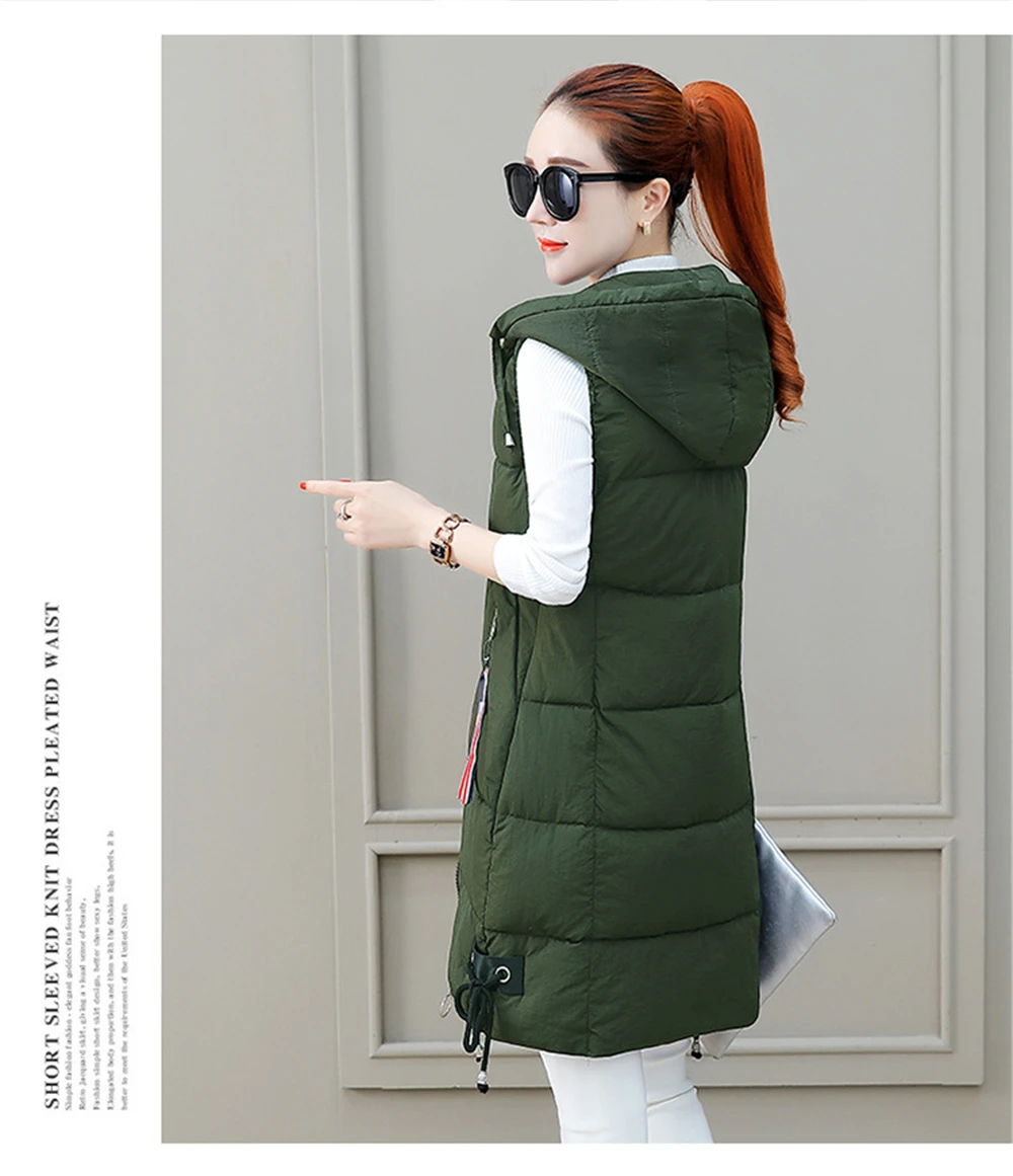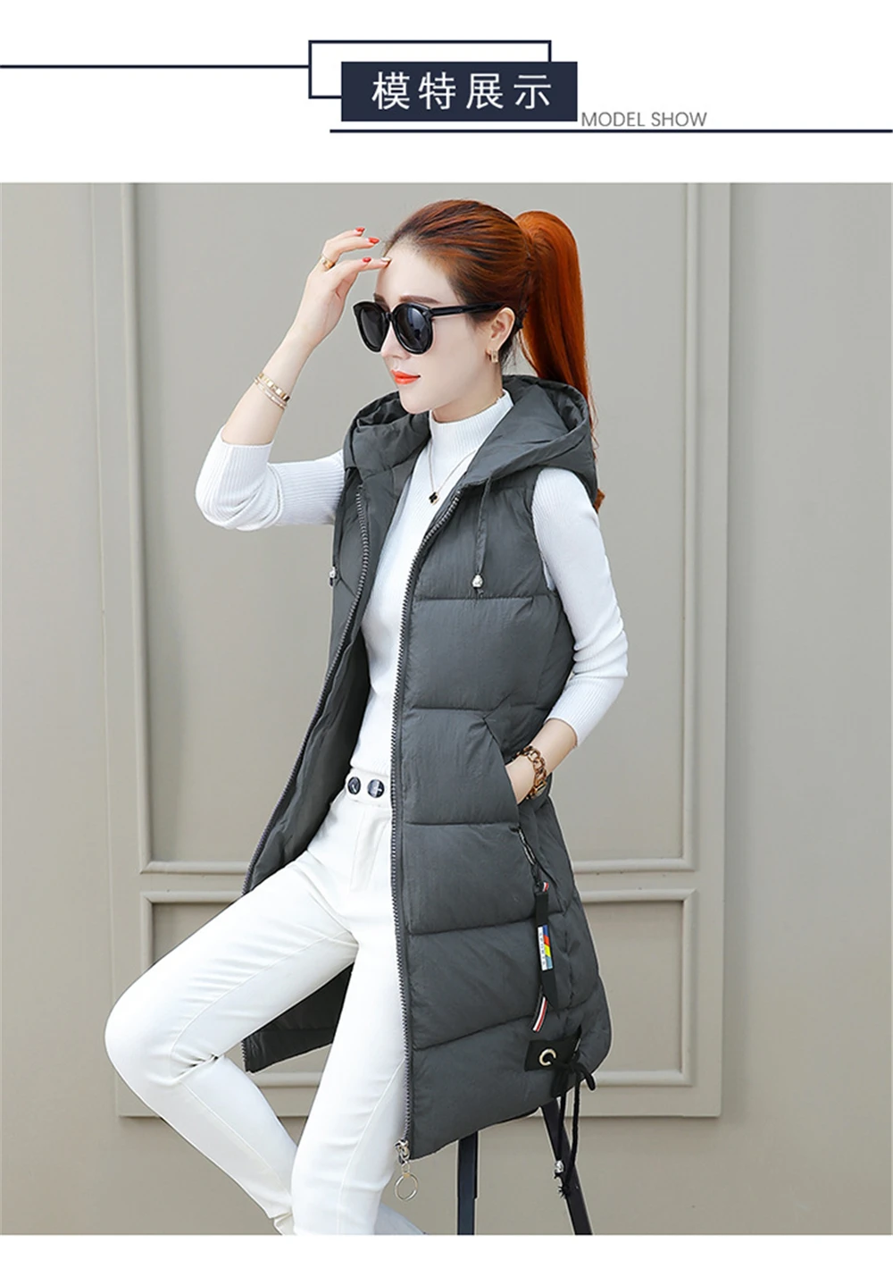 Женский зимний хлопковый пуховик, Свободный Длинный жилет с капюшоном