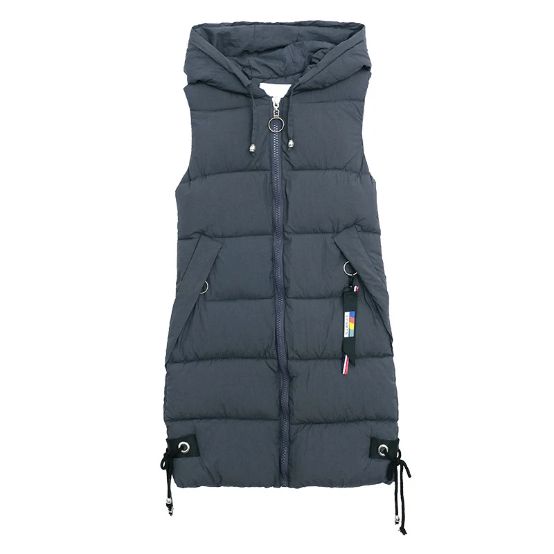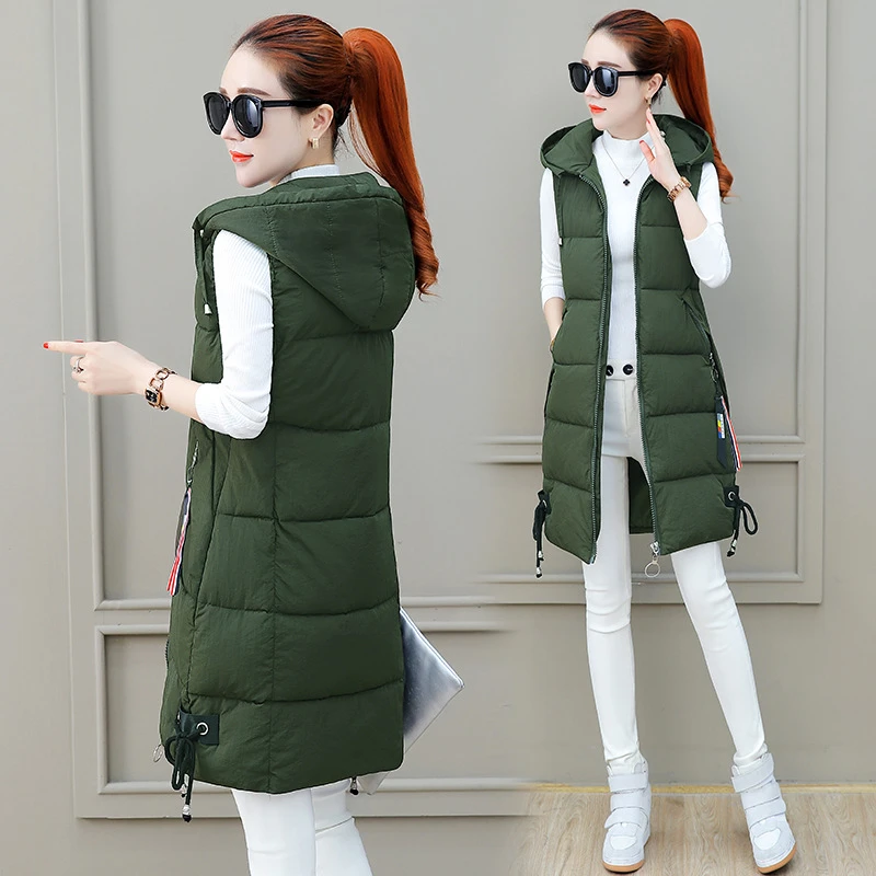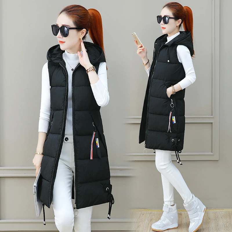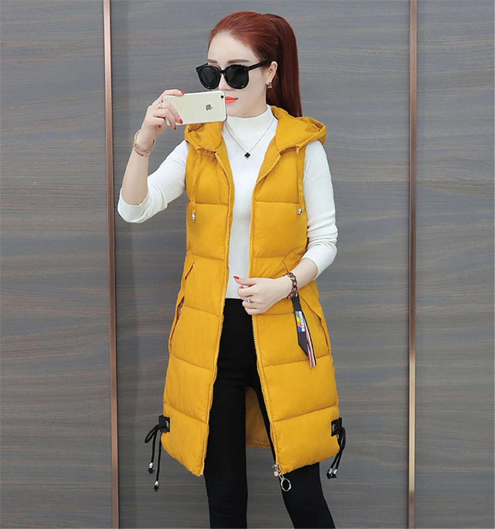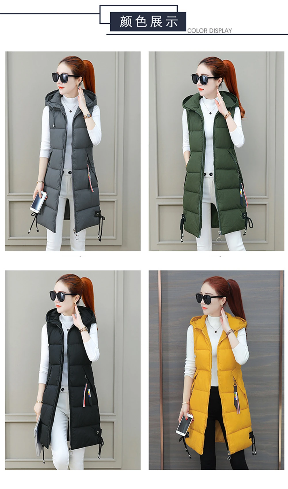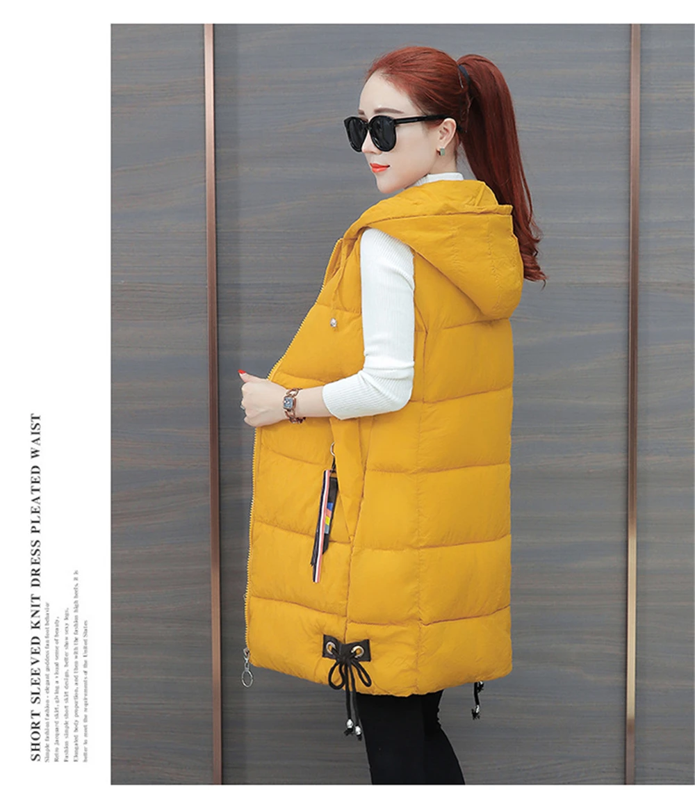 Женский зимний хлопковый пуховик, Свободный Длинный жилет с капюшоном