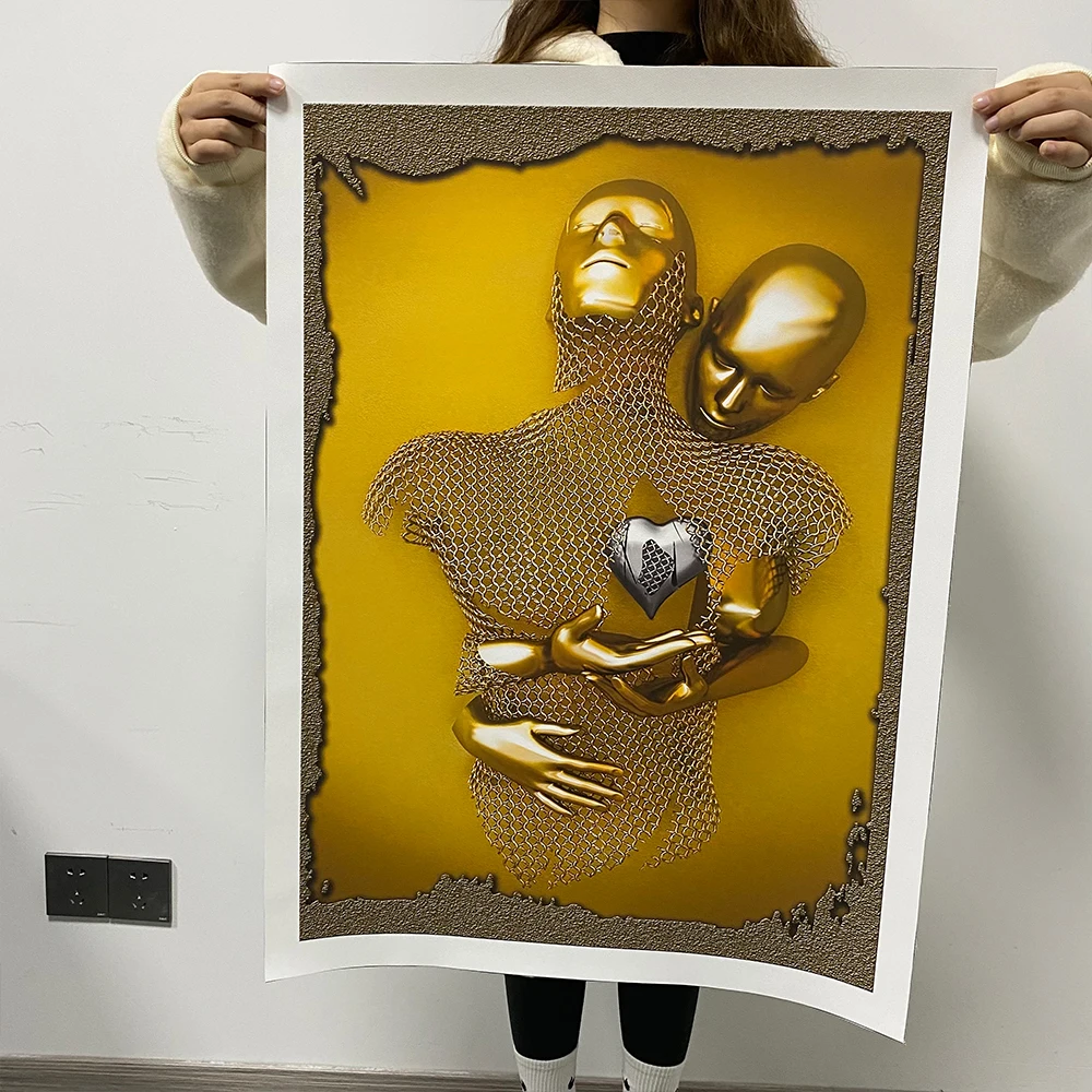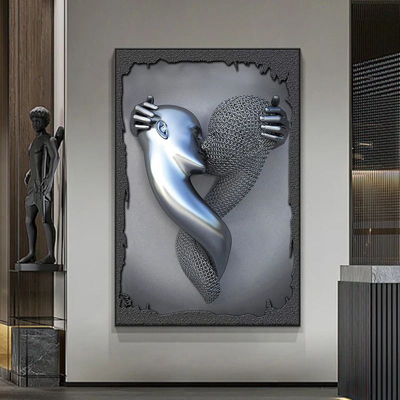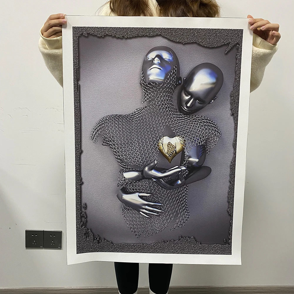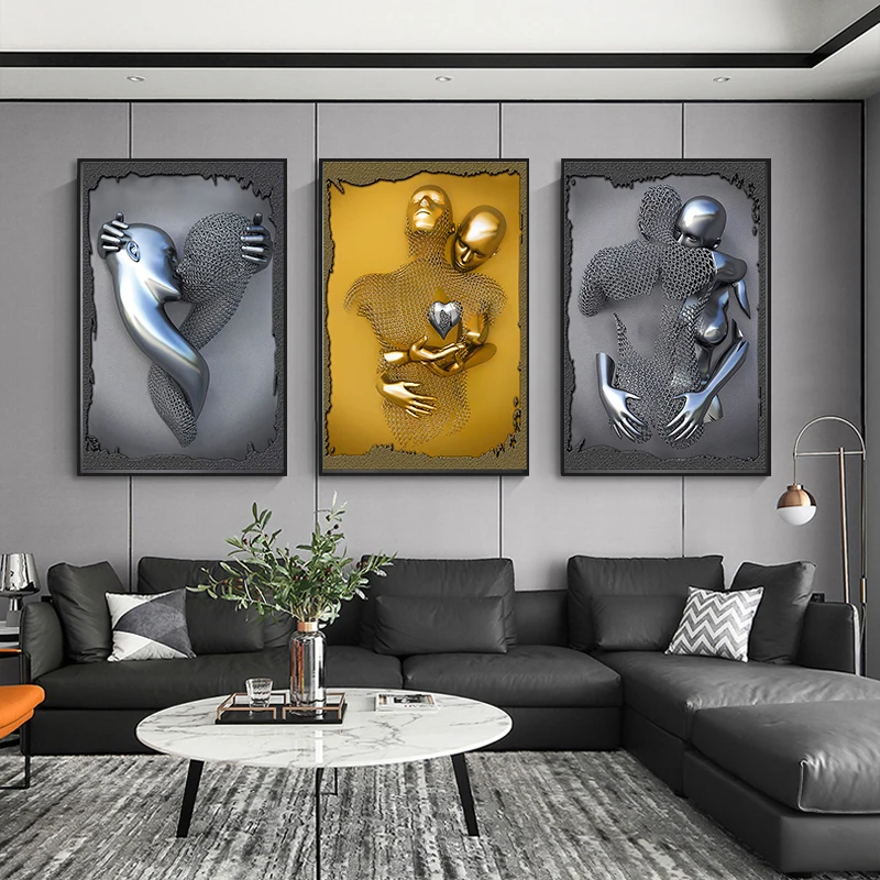 Металлическая Статуя, Художественная Картина на холсте, постеры и принты, Современная 3D скульптура, настенные картины для гостиной, украшения дома