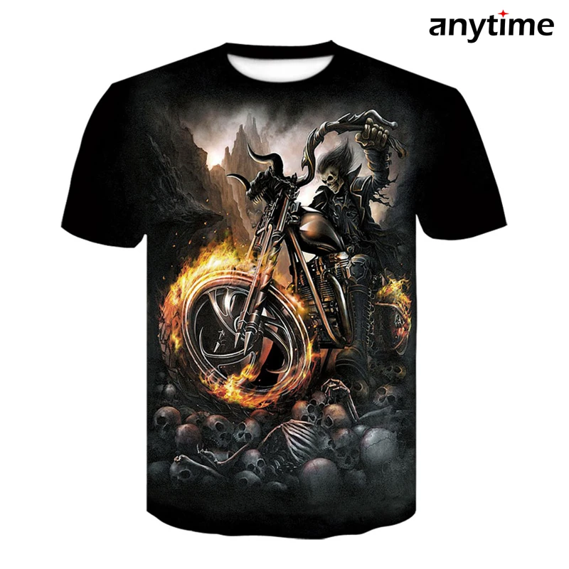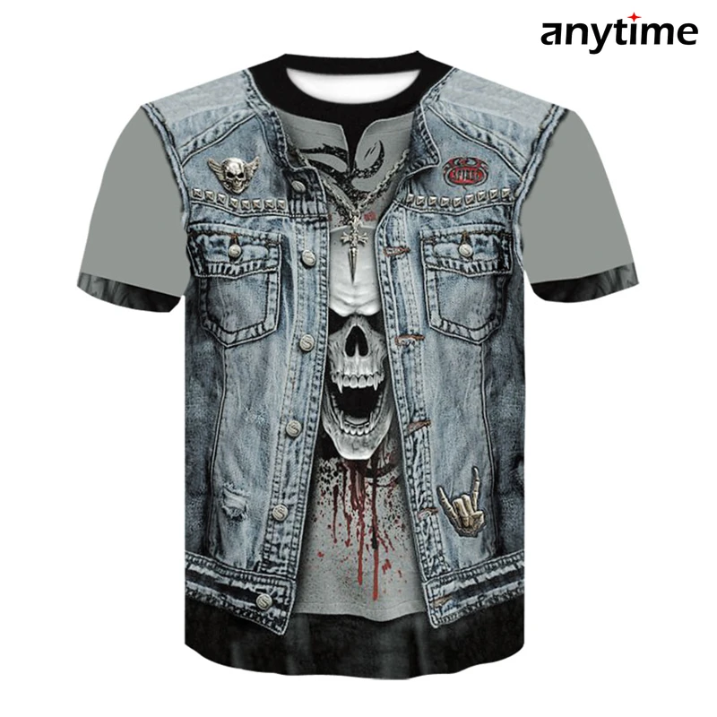 Футболка мужская с 3D-принтом черепа, крутая тенниска в стиле панк, модная майка в стиле оверсайз, лето