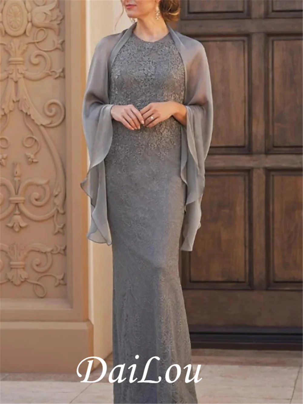 Платье-футляр из двух частей для матери невесты, элегантное шифоновое кружево до пола с вышивкой и драгоценным камнем, длина 2021