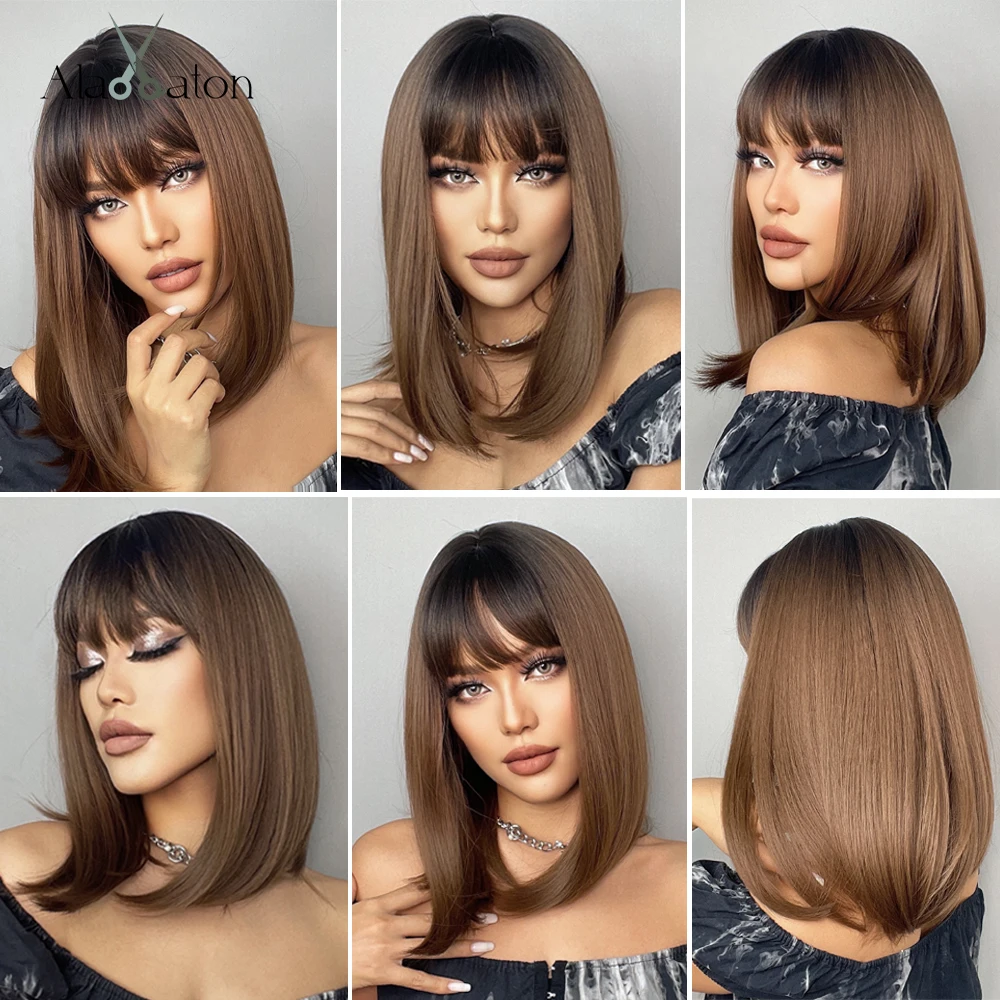 Парики ALAN EATON Омбре черные коричневые короткие прямые парики Лолита БОБО с челкой синтетические парики для женщин Косплей ежедневная термостойкость