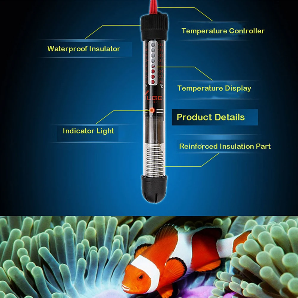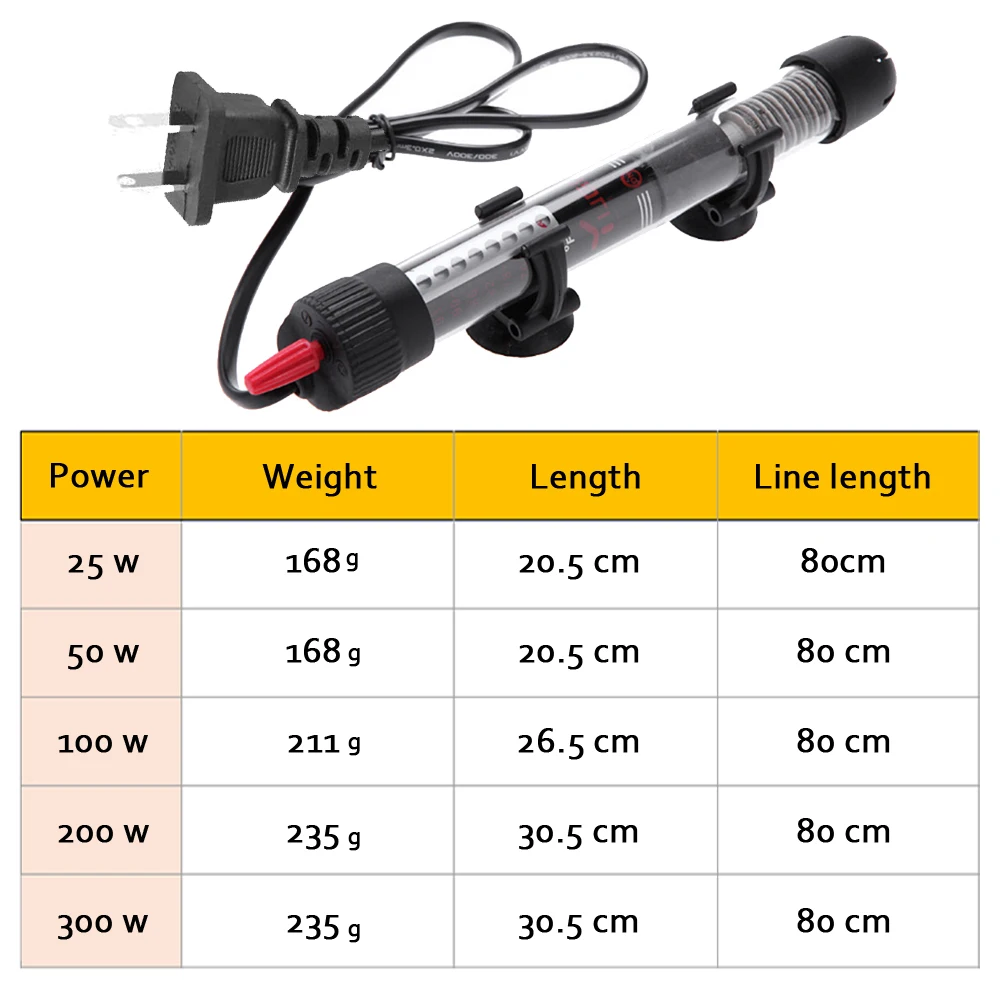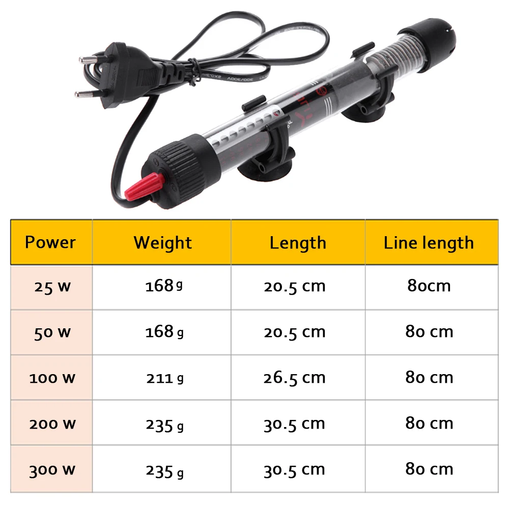 Нагревательный элемент для аквариума, 25-300 Вт, 20-34 C, нагреватель для аквариума с постоянной температурой, максимальное погружение, 1,2 м, полностью погружной