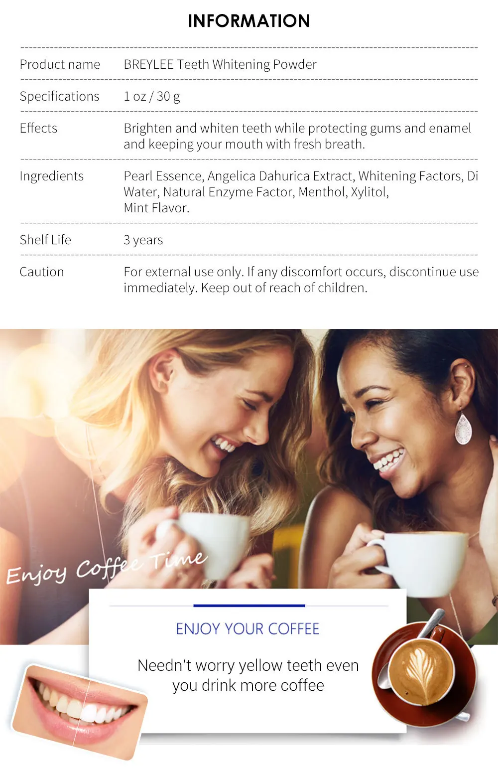 Порошок для отбеливания зубов BREYLEE, средство для гигиены полости рта, удаление пятен от зубов, уход за свежим дыханием, отбеливание