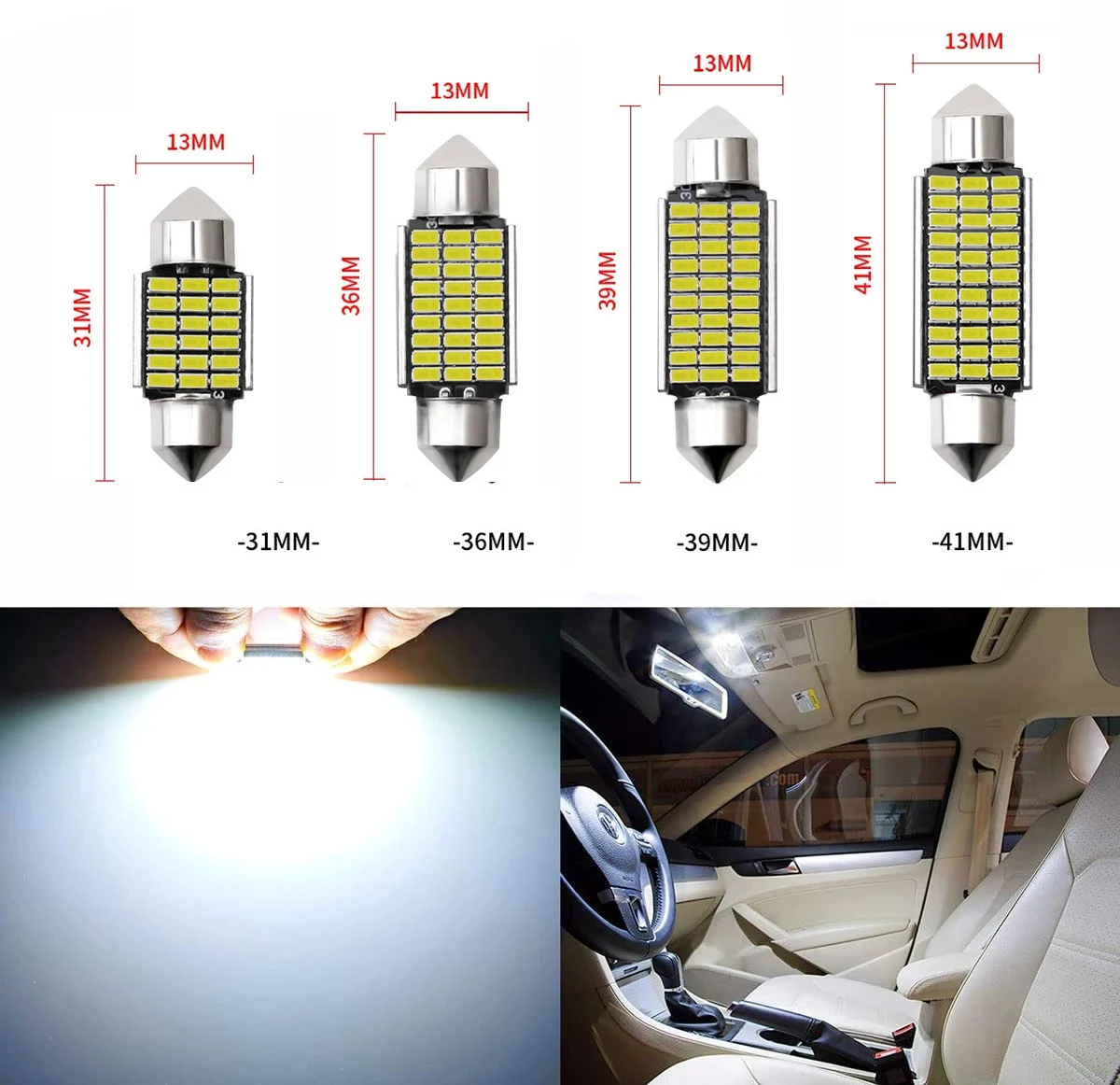 Светодиодная лампа C5W CANBUS, 31 мм, 36 мм, 39 мм, 42 мм, C10W, чип 4014, 12 В, лампа для чтения салона автомобиля, белая, 6000k, без ошибок, 2 шт.