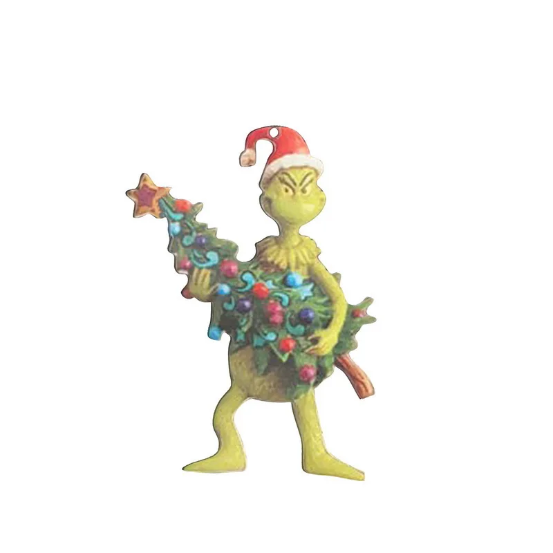 Плоские рождественские украшения Grinch, рождественские украшения для елки, креативное украшение, деревянные аксессуары, рождественские украшения 2021
