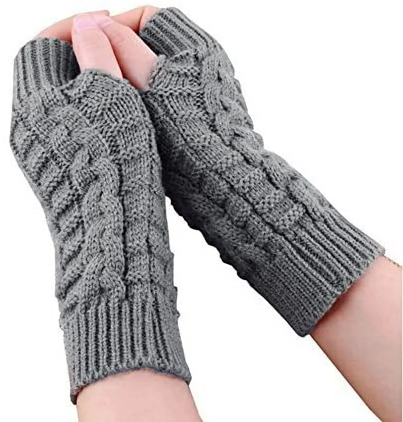 Перчатки на полпальца для женщин, зимние мягкие теплые шерстяные вязаные рукавицы, мягкие теплые варежки, унисекс перчатки без пальцев, 1 пара