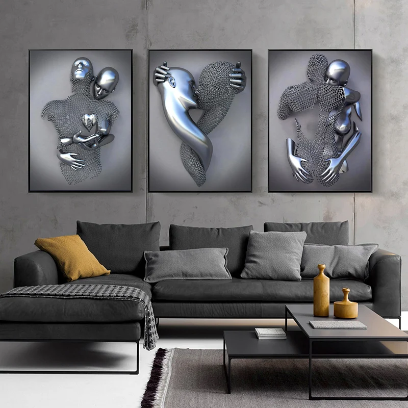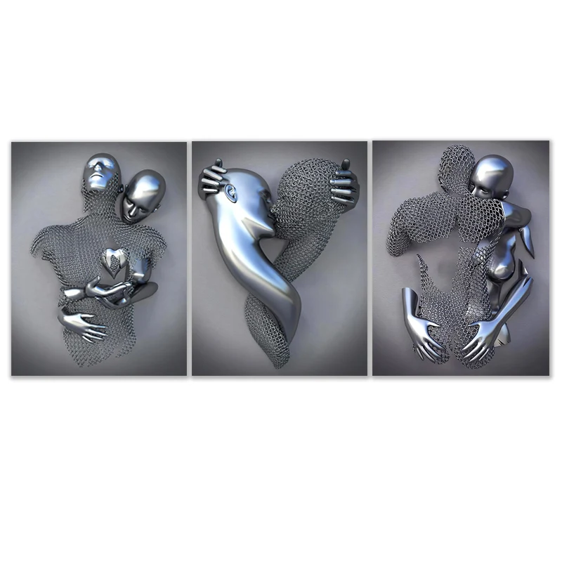 Романтическая современная металлическая статуя для влюбленных, Художественная Картина на холсте, постеры и принты, настенные картины, американский стиль, декор для гостиной, картина