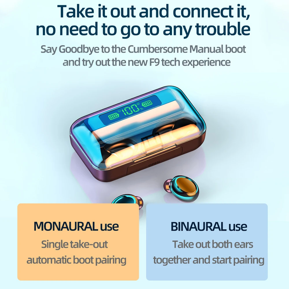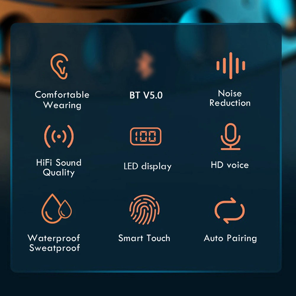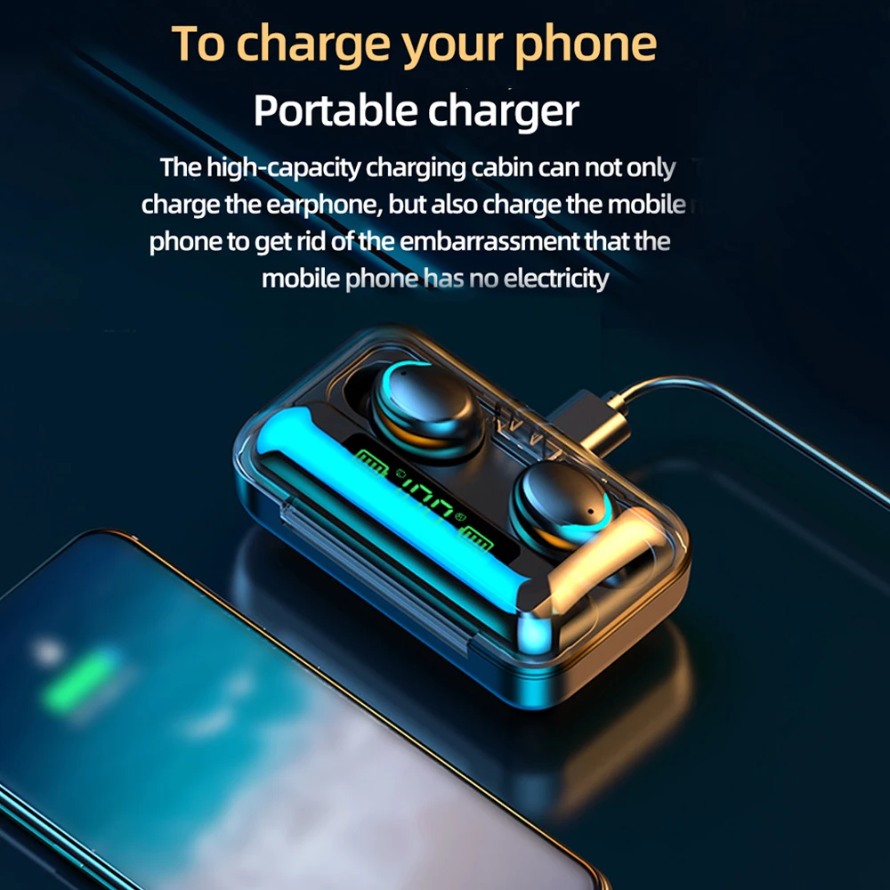 Эти мини-наушники-хороший подарок для любителей музыки, их удобно носить и легко управлять, беспроводной дизайн, отлично подходит для занятий спортом. С портативной зарядной коробкой, вы никогда не будете беспокоиться о его батарее.Особенности:Светодиодный дисплей питания: интуитивное понимание мощности кабины и наушников с первого взгляда.Одна кнопка для переключения песни и регулировки громкости помощник пробуждения.Ящик для хранения гарнитуры может использоваться как кронштейн на мобильный телефон.Наслаждайтесь чистым звуковым эффектом и наслаждайтесь эффектом объемного звучания 9D.Эта гарнитура может использоваться устройствами с поддержкой bt независимо от бренда и модели.Характеристики:Цвет: черныйВодонепроницаемость: IPX7Материал: пластикРасстояние передачи: 10 мБатарея наушников: 3,7 V, 50 мА · чЗарядка коробка Батарея: 3,7 V, 2000mAhРазмер посылка: 141*101*39 мм/5,6*4,0*1,5 дюймовПосылка Вес: 120 г/4,2 унцииУпаковочный лист:1 * пара наушников1 * коробка для зарядки1 * кабель питания
