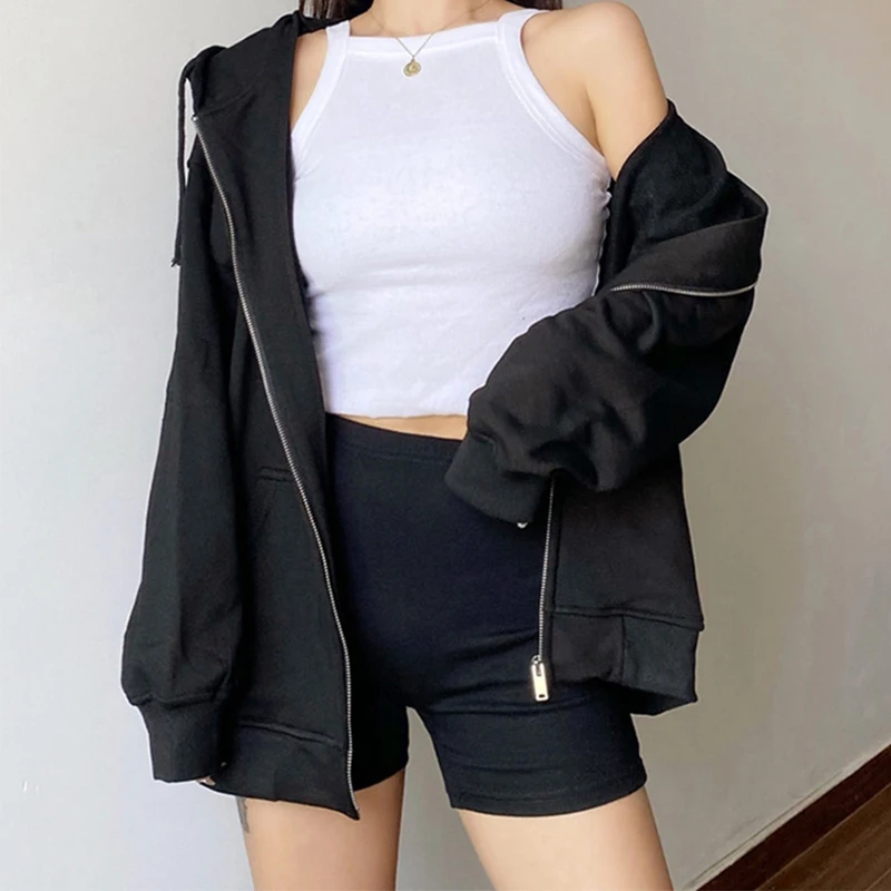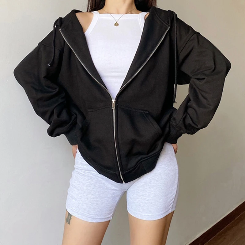 Женская толстовка на молнии Y2K, черная длинная куртка большого раз...