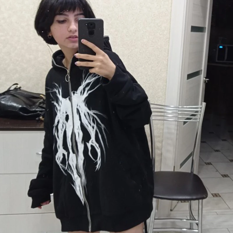 Женская Толстовка Оверсайз Y2K, в готическом стиле, на молнии, с дл...