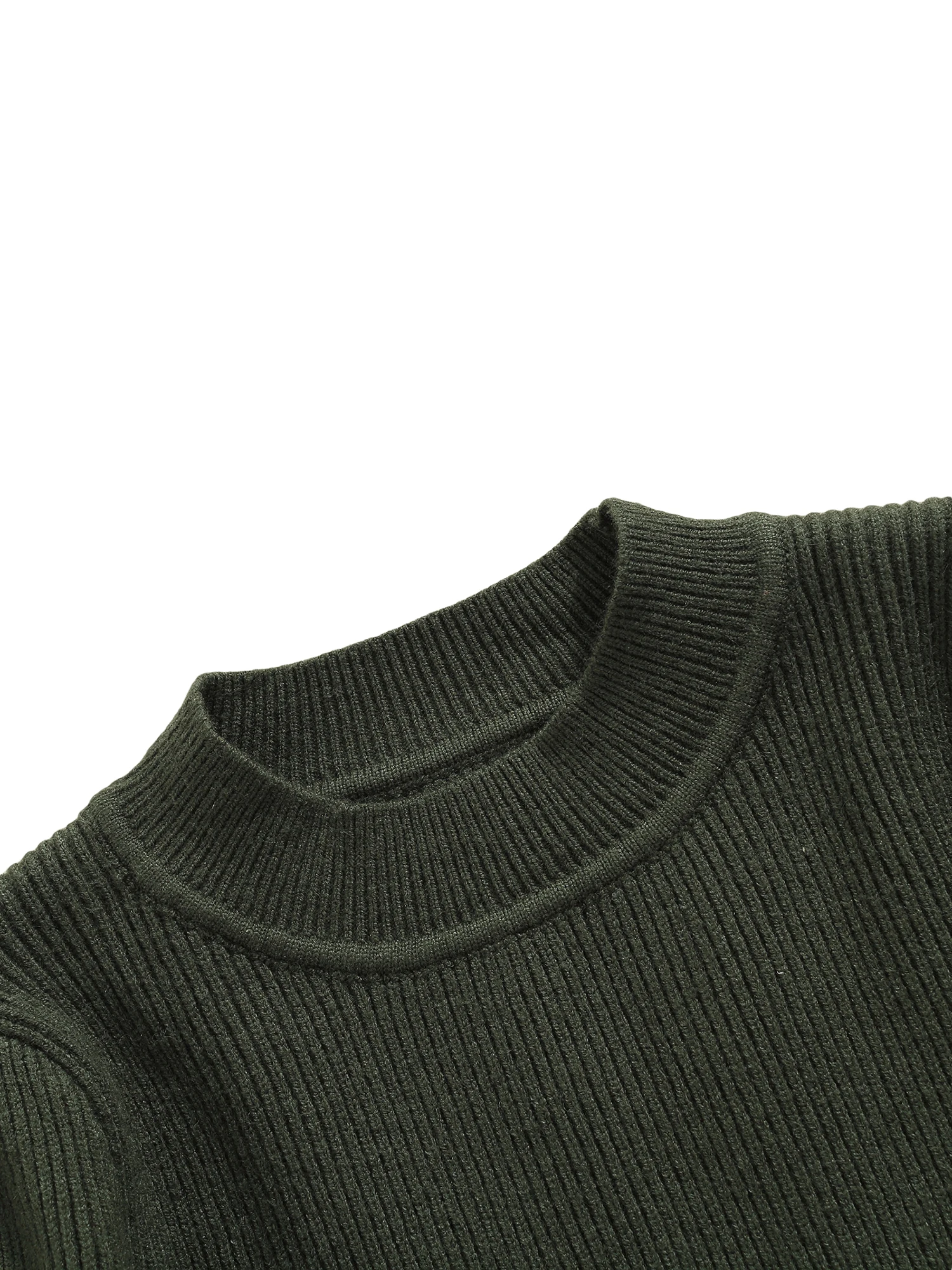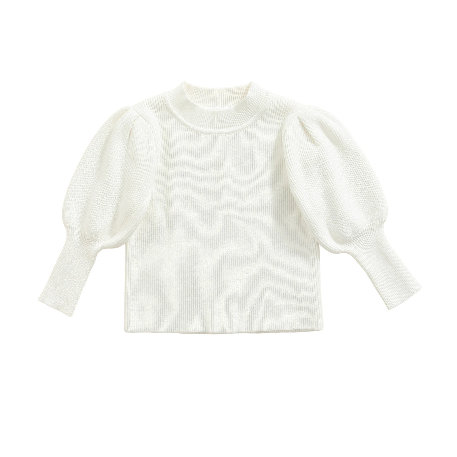 Однотонный свитер для младенцев, осенне-зимний пуловер для маленьких девочек с пышными рукавами и полуворотником, вязаный шерстяной свитер