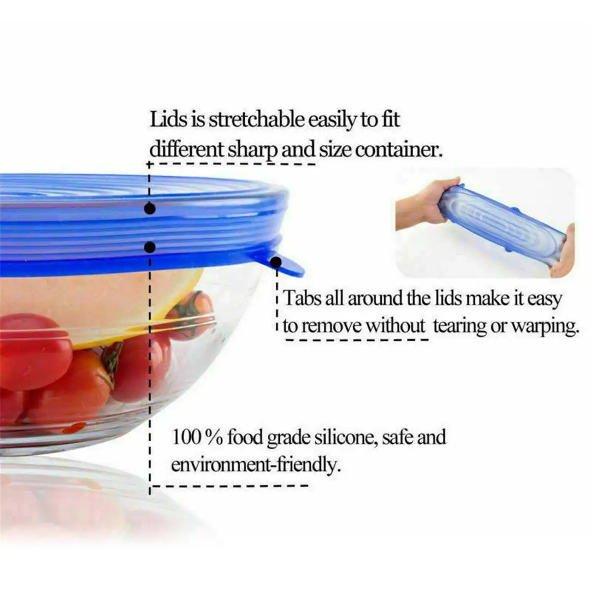 Изготовлен из пищевого силикона, отличное уплотнение, чтобы сохранить вашу еду, фрукты и овощи свежими.