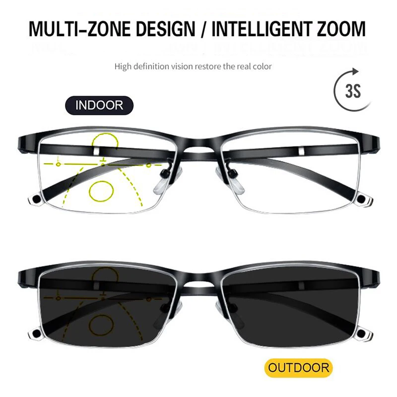 Очки для чтения мужские многофокальные, металлическая фотохромная к...