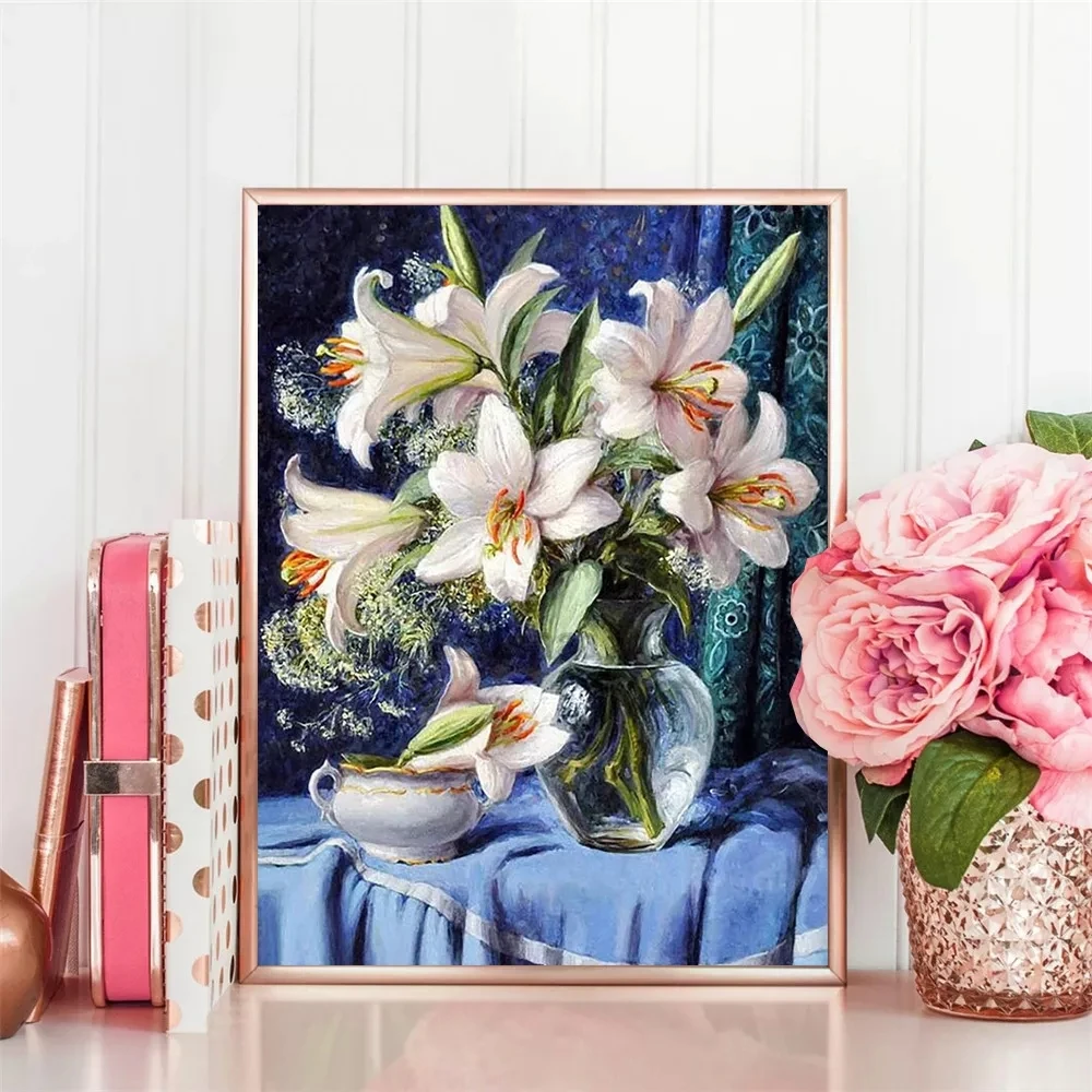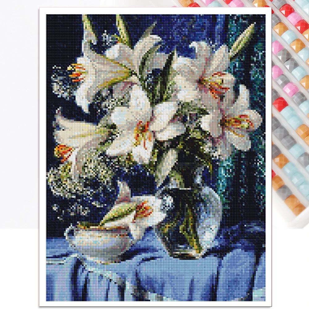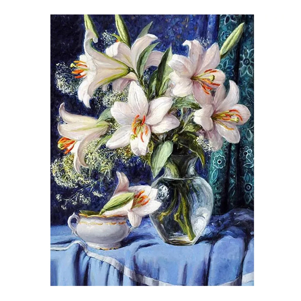 Бриллиантовая живопись, вышивка крестиком, цветы, домашний декор, алмазная вышивка, ручная работа, подарок