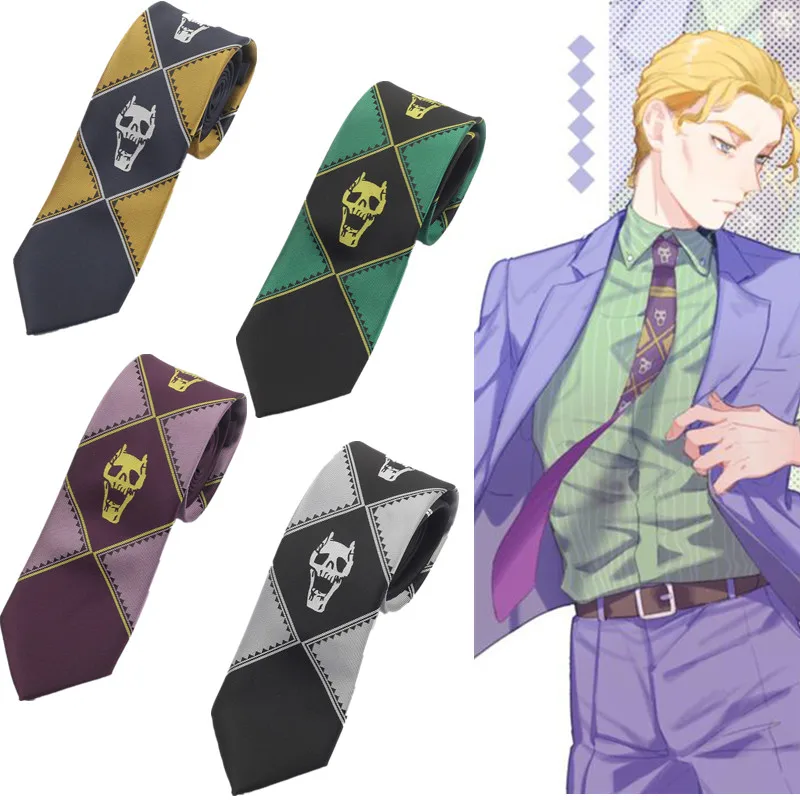Японский галстук с аниме Невероятные приключения Джоджо, косплей с Кирой йошикаге, с черепом KILLER QUEEN, аксессуар для шеи в стиле унисекс, аксессуар для костюма, подарок