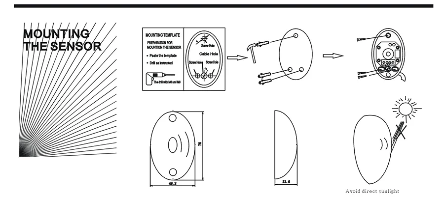 Площадь детектора: в помещении 20 м. Уличный 10 мРабочее напряжение: 12 В, 24 В постоянного тока (не может работать с мощностью переменного тока, руководство пользователя неправильно)Рабочий ток: 50 мАТемпература: + 70 ~ (-20)Размер: 76x49,2x21,6 ммВодонепроницаемость, УФ-защита