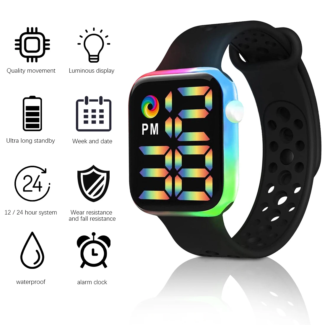 Электронные часы со светодиодной подсветкой, квадратные модные флэш-часы, часы с кнопкой, цифровые спортивные часы, мужские и женские силиконовые часы