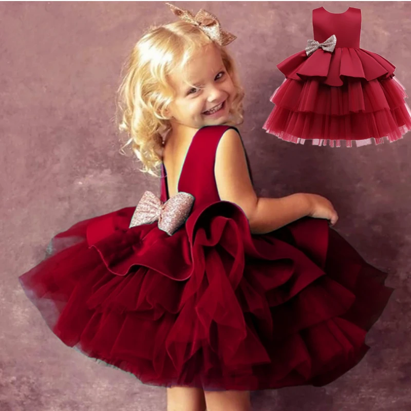 Бальное платье для младенцев 1-5, многослойное платье-пачка, красная Новогодняя одежда для девочек, вечерние платья на день рождения для маленьких девочек, одежда для малышей