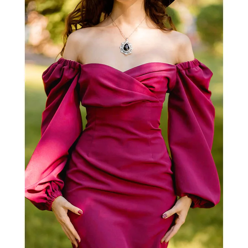 ОсеньЗима 2021 Европейское и американское сексуальное платье с низким вырезом Новое приталенное платье с пузырьковым рукавом