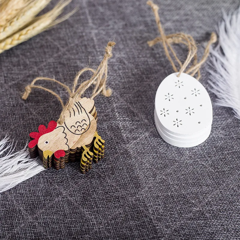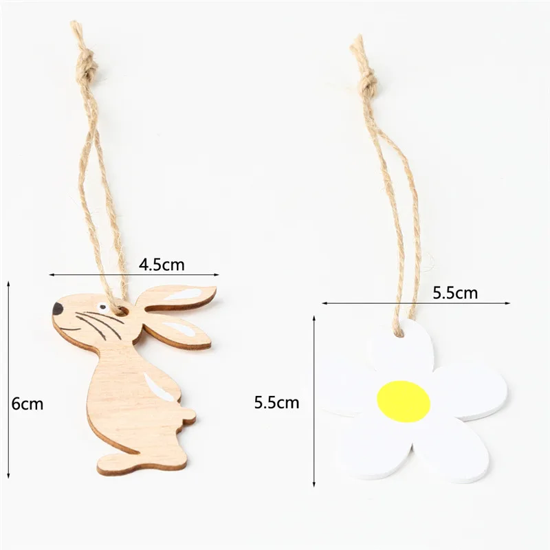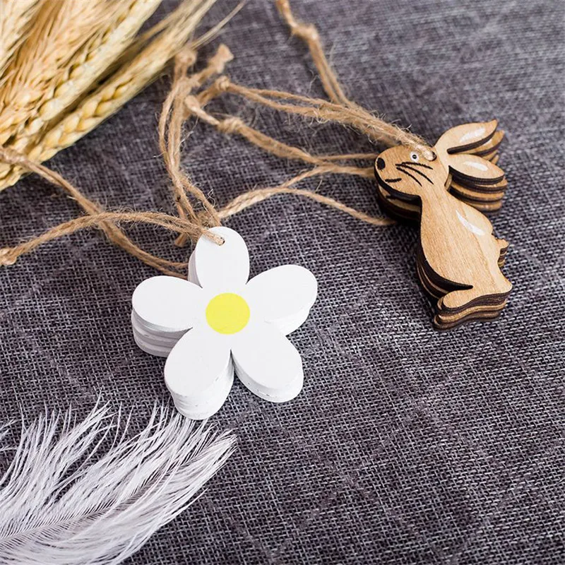 8 шт. Счастливой Пасхи деревянные фишки подвески кроличьи яйца деревянные поделки куриные цветы висячие украшения пасхальные украшения для дома подарки