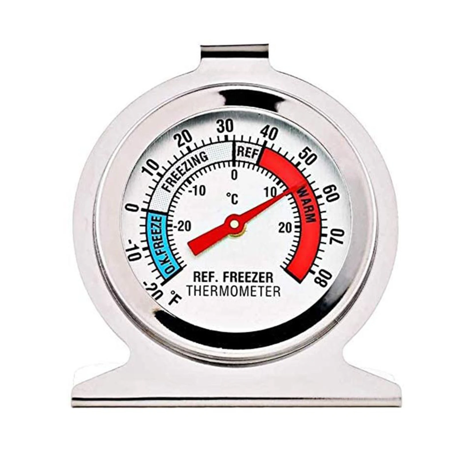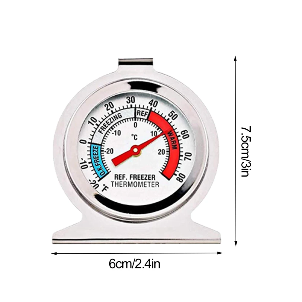 Особенности1. Удобный и практичный: Этот термометр для холодильника подходит для традиционных холодильников, морозильников, коробок для сохранения тепла и т. д. Он имеет большой циферблат, и на поверхности термометра холодильника есть прозрачные синие и красные индикаторы площади, что облегчает чтение температуры.2. Термометр для холодильника изготовлен из нержавеющей стали, его нелегко сломать, долгий срок службы, долговечный, легко чистится стеклянный Защитный Объектив, очень подходит для холодильников и морозильников.3. Хорошая точность и быстрое чтение.4. Нет необходимости в аккумуляторах, прочный.Характеристики:Материал: нержавеющая стальРазмер: 7,5x 6 смДиапазон температур: -20 ℃ ~ 20 ℃/-20 ℉ ~ 80 ℉Вес нетто: 40 гПосылка включает в себя:1 термометр для холодильника