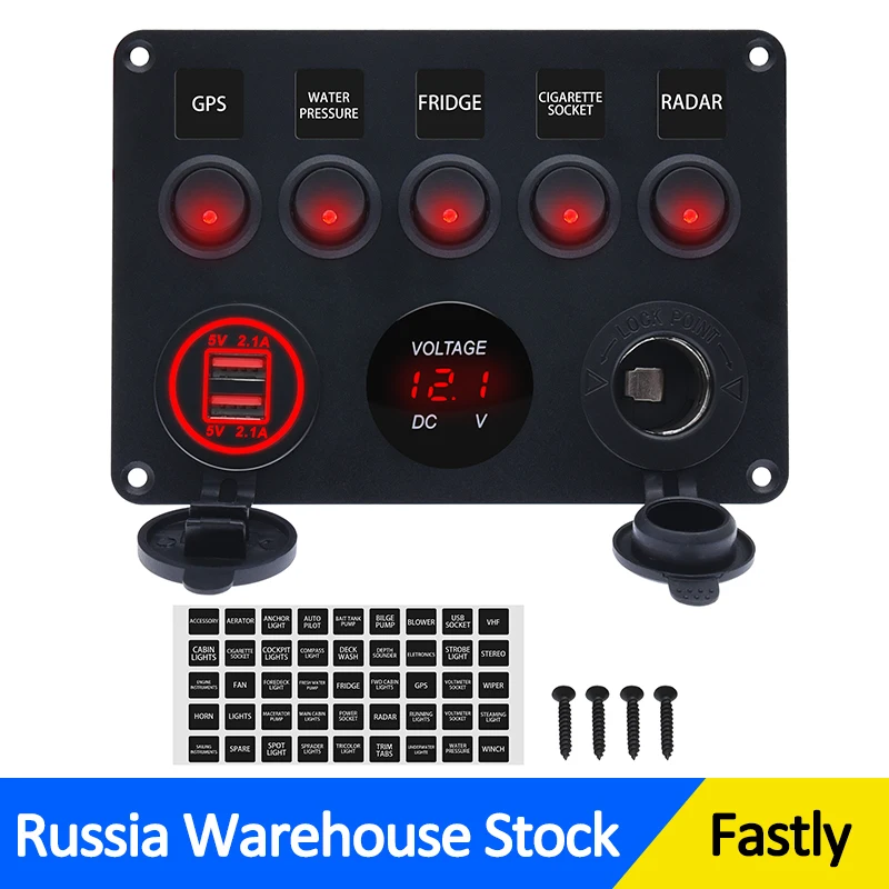 Панель переключателя для автомобиля, 5 клавиш, 4,2 А, 12-24 В