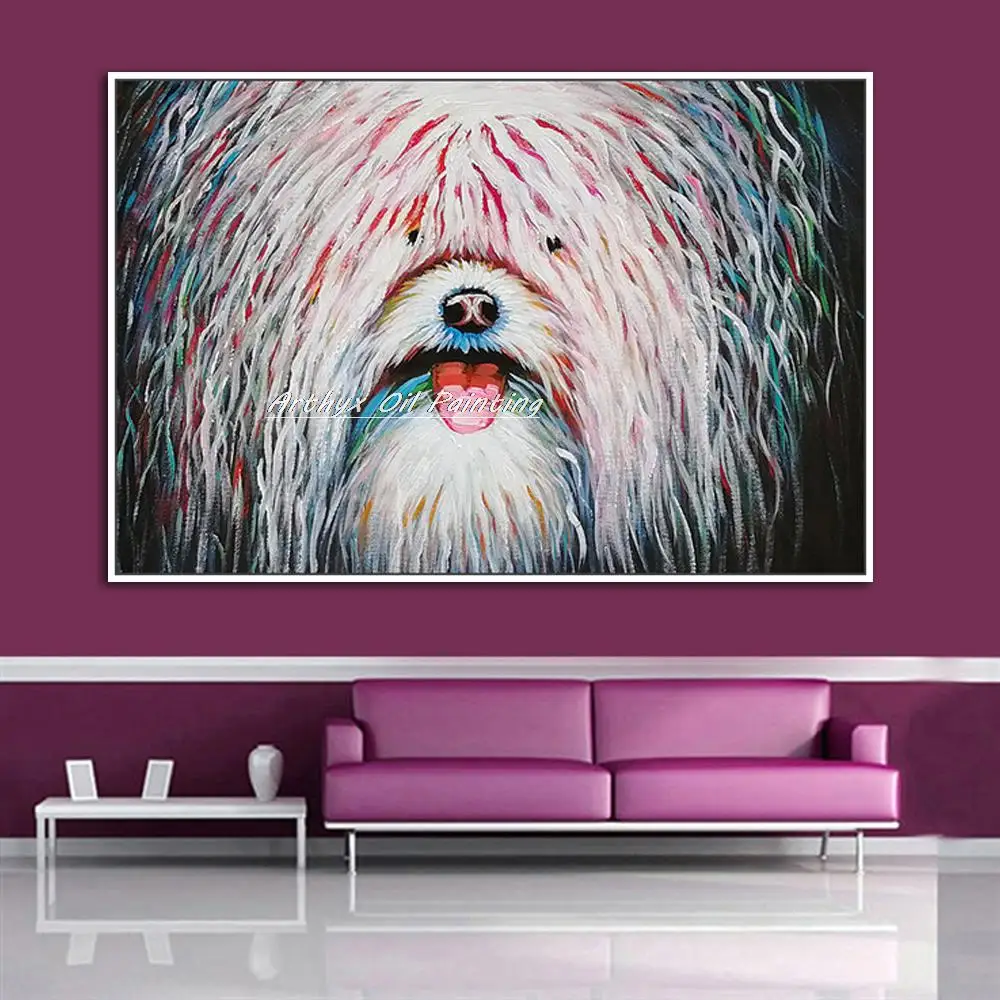 Arthyx Ручная роспись Абстрактная Собака Картина маслом на холсте Ручная работа поп-арт большая Настенная картина для детской комнаты украшение дома