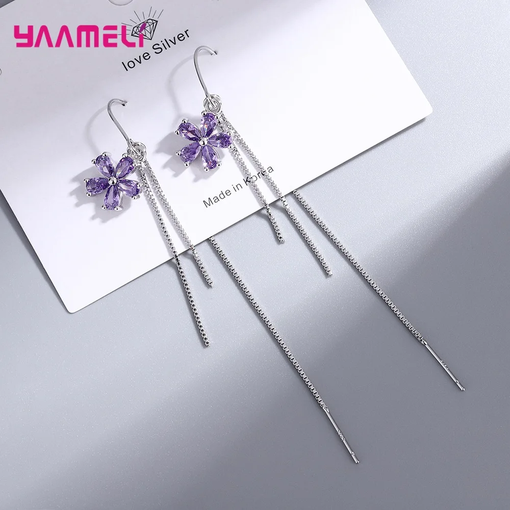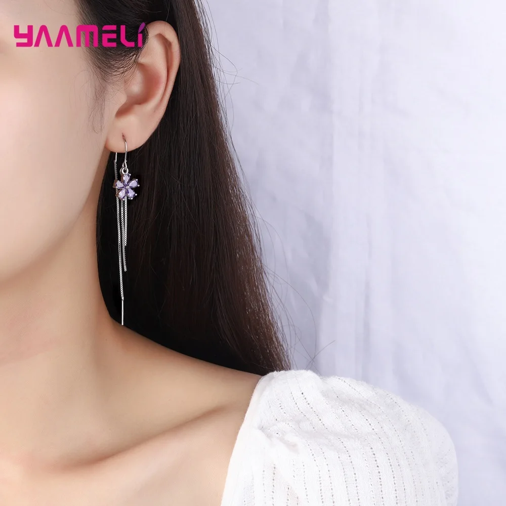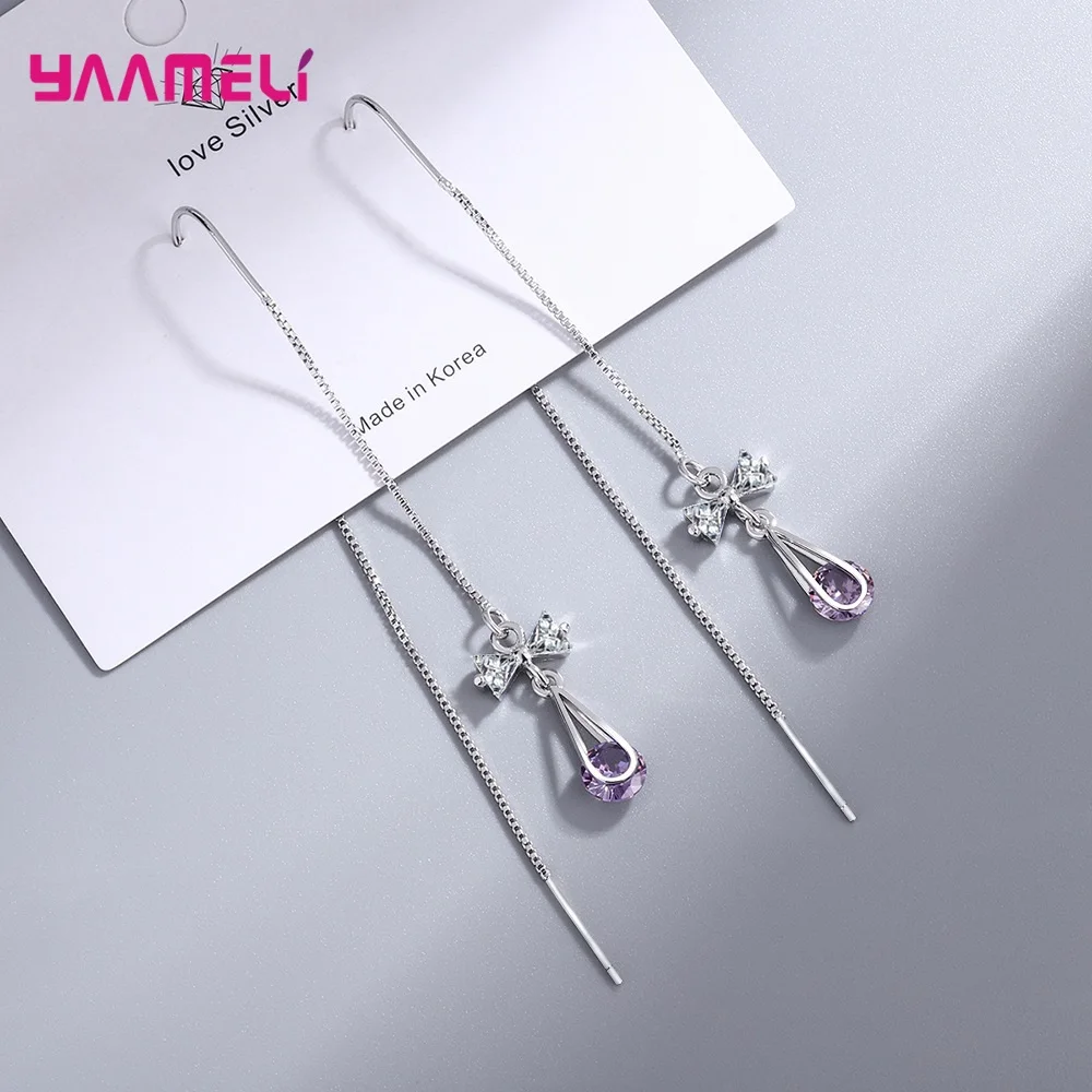 Женские серьги-подвески из серебра 925 пробы, с кристаллами