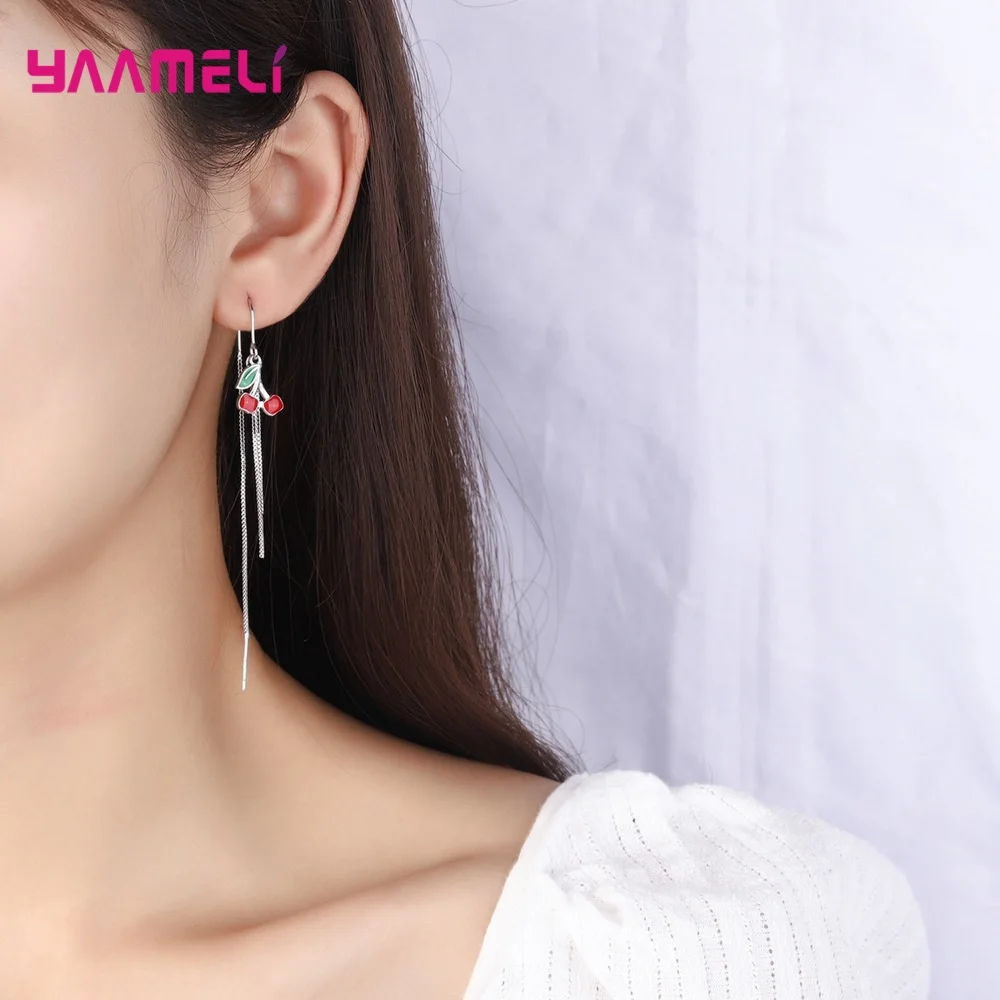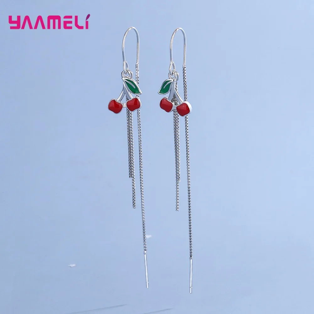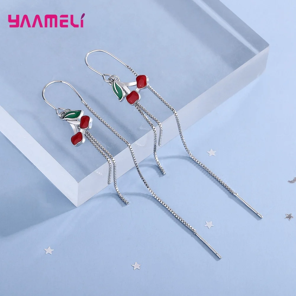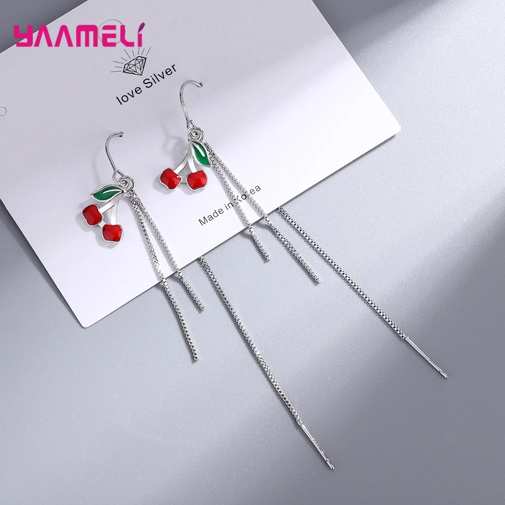 Милые вишневые висячие серьги с длинной цепочкой и кисточками, женс...