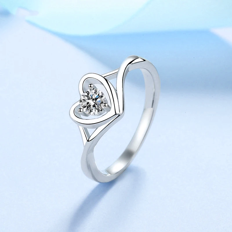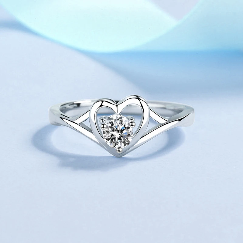 Женское кольцо с бриллиантами в форме сердца VVS D, обручальные кольца Moissanite из стерлингового серебра, свадебные ювелирные изделия, подарочная коробка