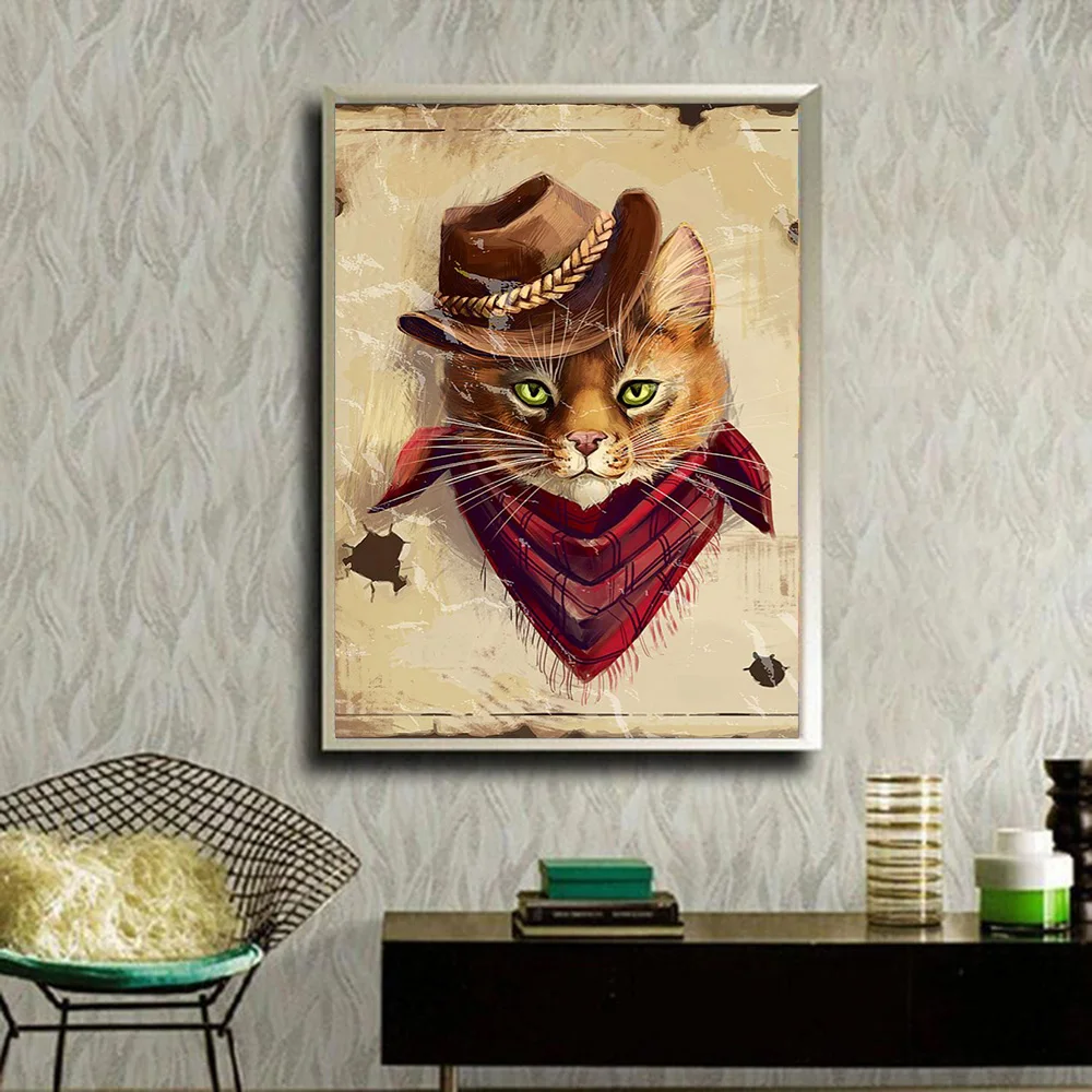 Алмазная картина с ковбойским котом YI BRIGHT, полноразмернаякруглая вышивка, мозаика, Набор для творчества, домашний декор, рождественский подарок
