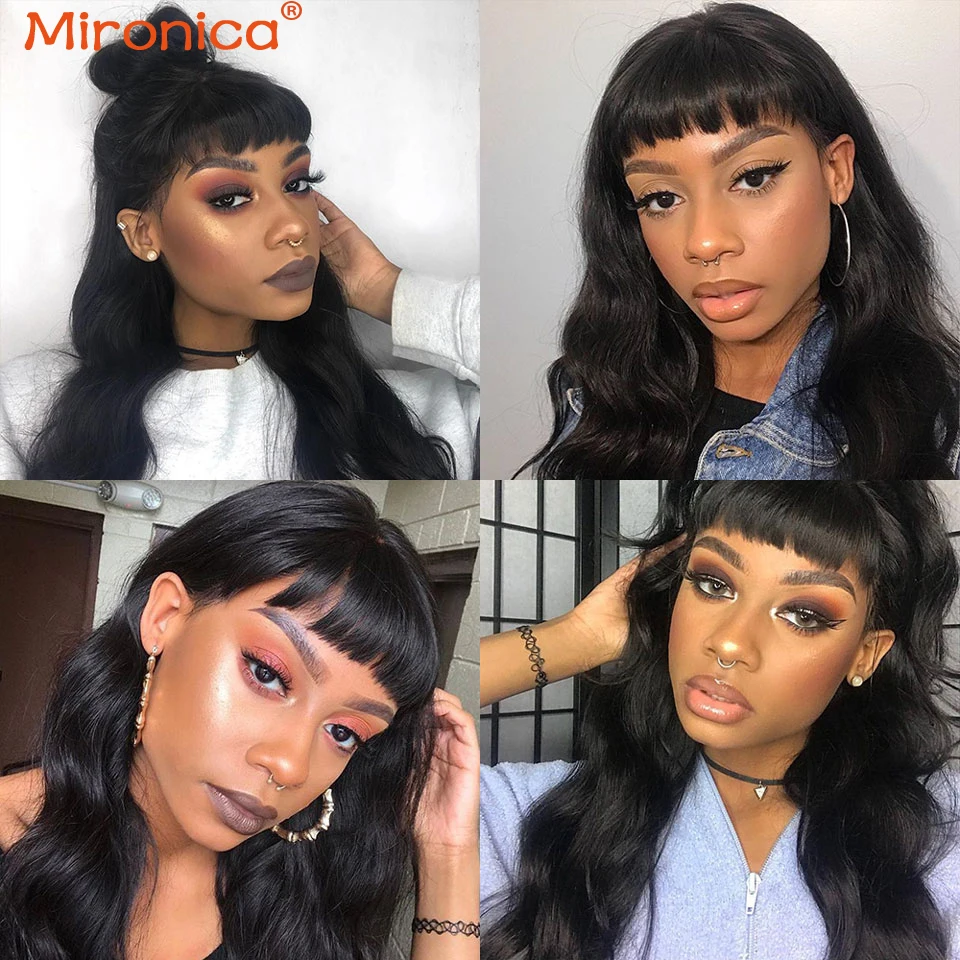 Свободные объемные человеческие волосы, раньше с челкой, полностью машинное изготовление, волосы Remy, бразильские волнистые человеческие волосы, парики для женщин