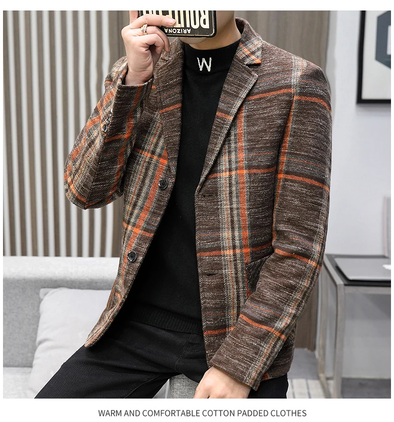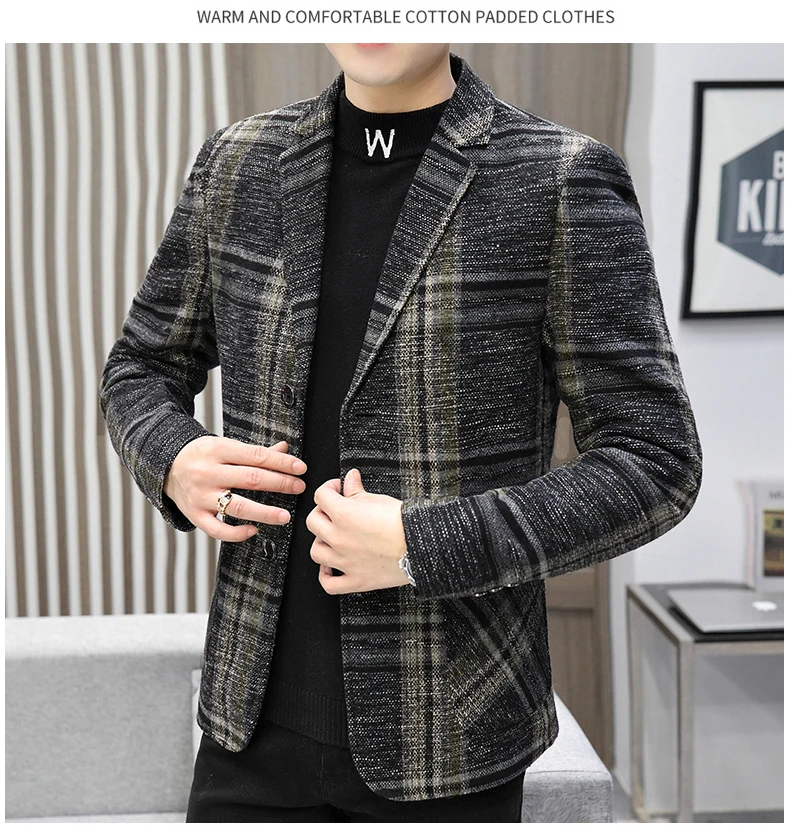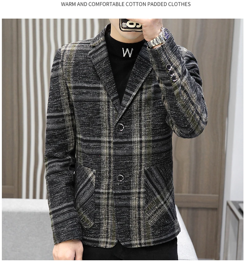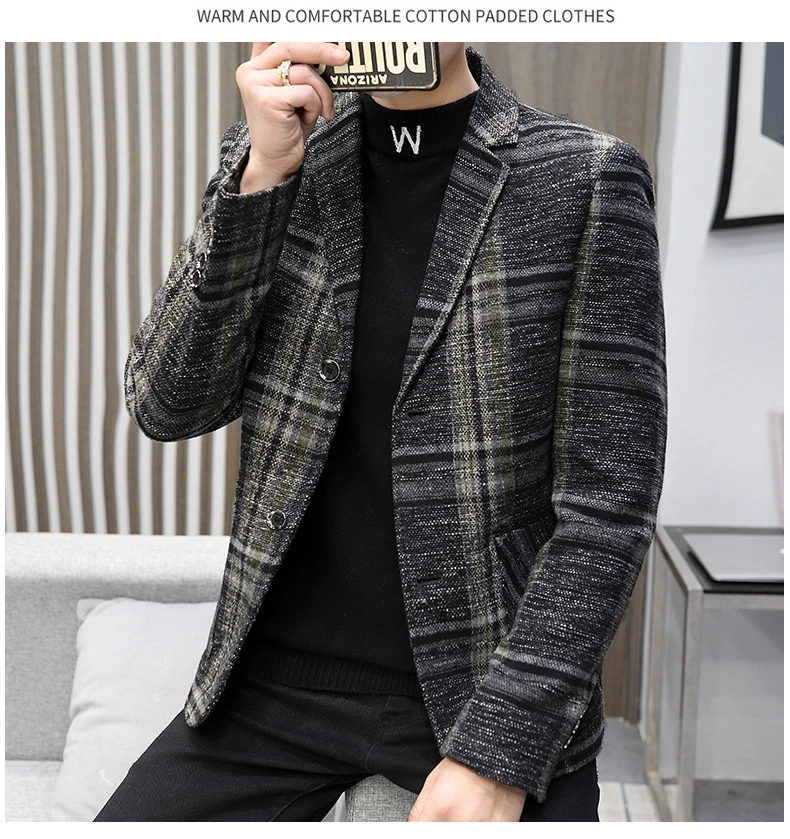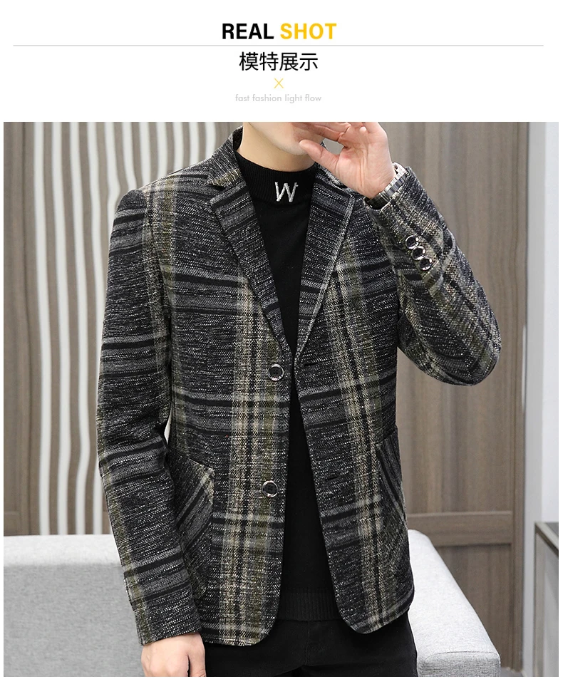 Мужской однобортный шерстяной Блейзер, деловой Повседневный блейзер в клетку, пиджак для выпускного вечера и свадьбы, для жениха, 4XL