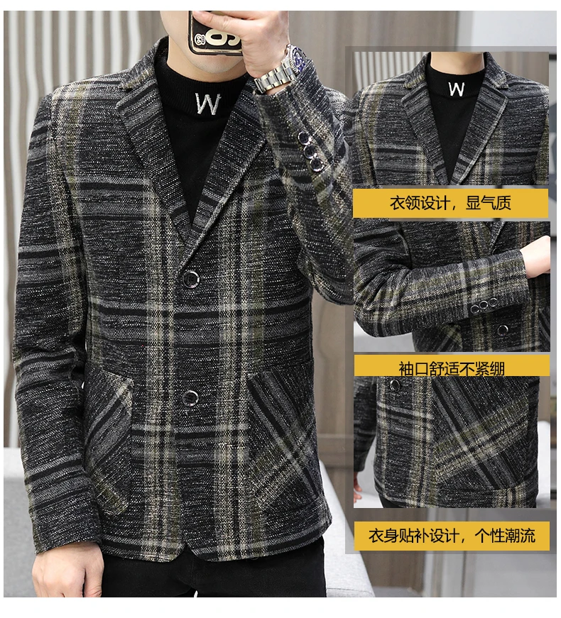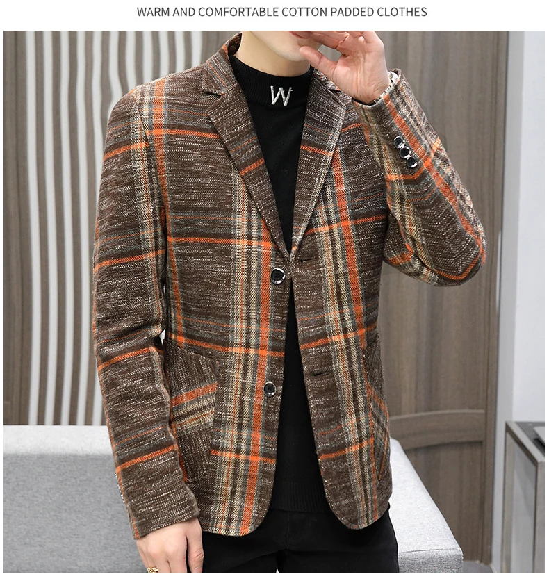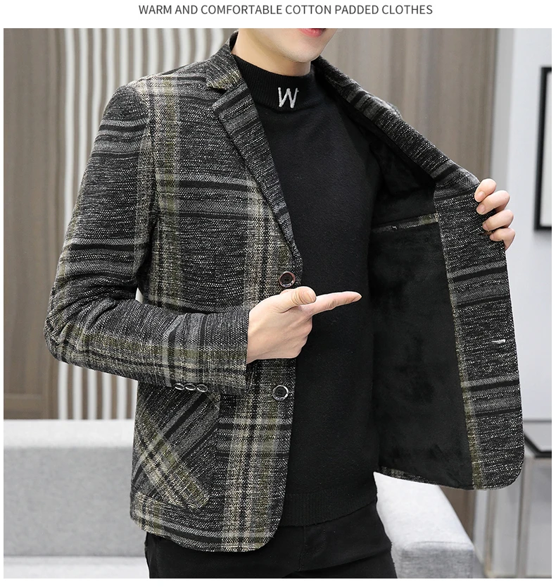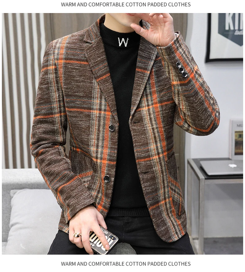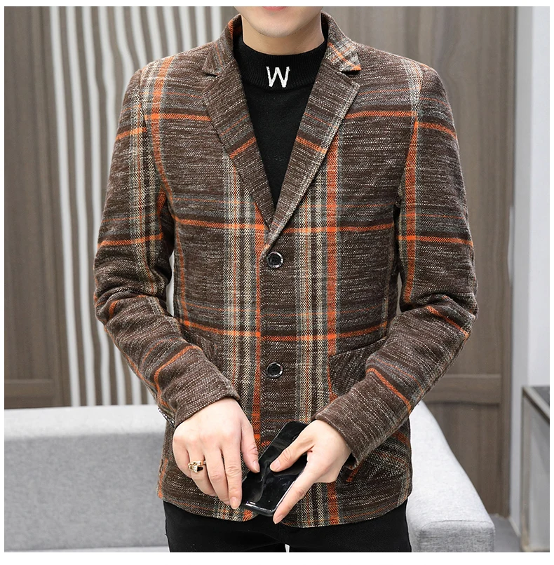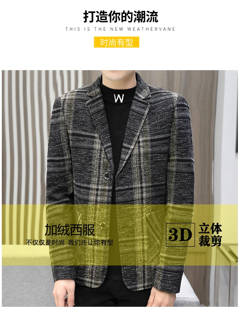 Мужской однобортный шерстяной Блейзер, деловой Повседневный блейзер в клетку, пиджак для выпускного вечера и свадьбы, для жениха, 4XL