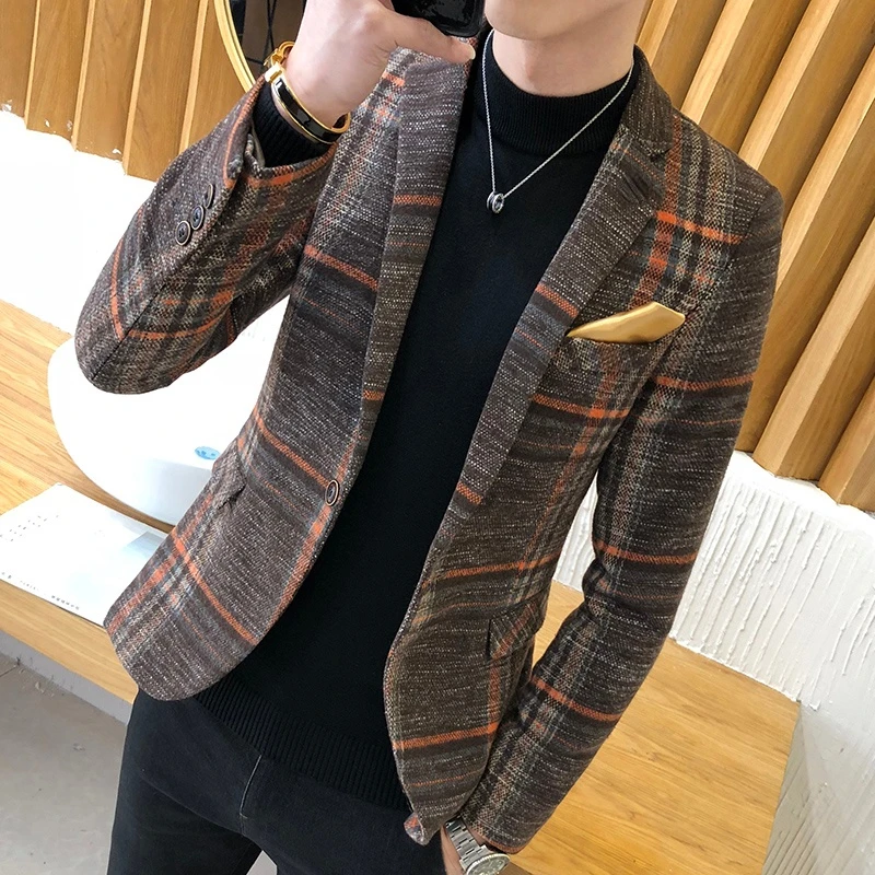 Новинка, весна-осень, мужские блейзеры, приталенный Британский клет...