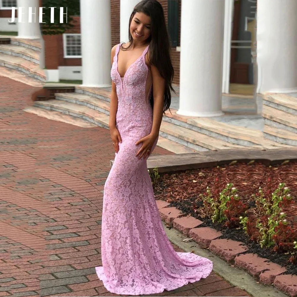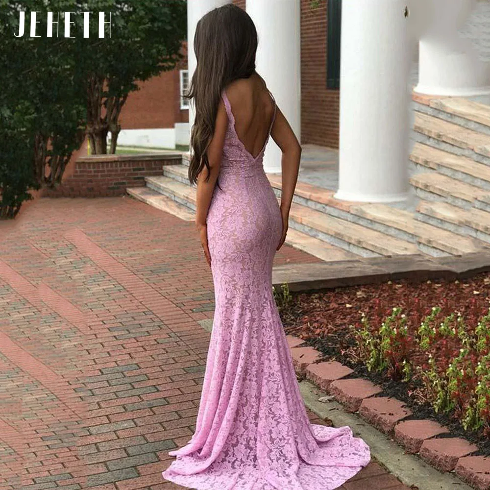 Женское вечернее платье с юбкой годе JEHETH, кружевное платье с двойным V-образным вырезом и открытой спиной, платье для выпускного вечера, платье до пола