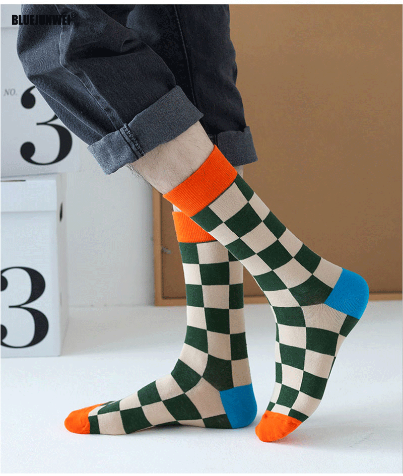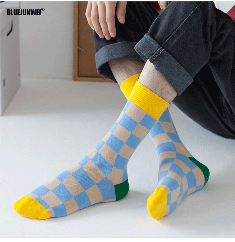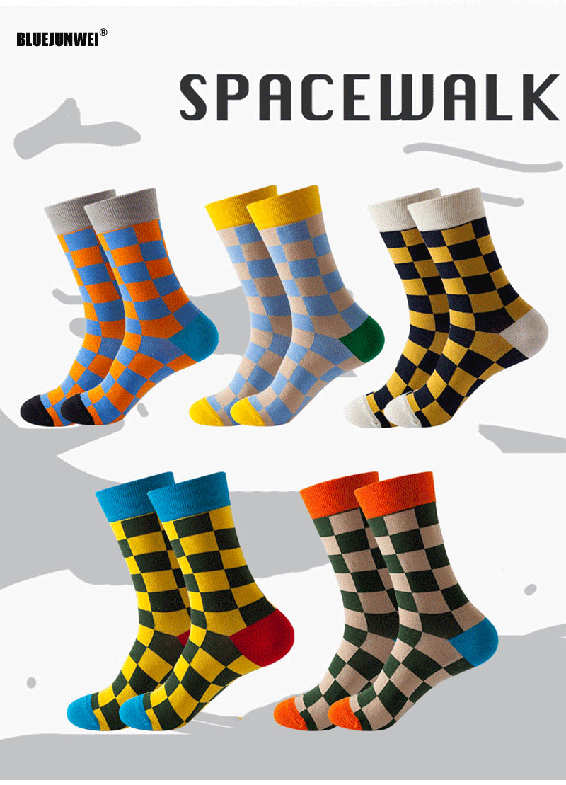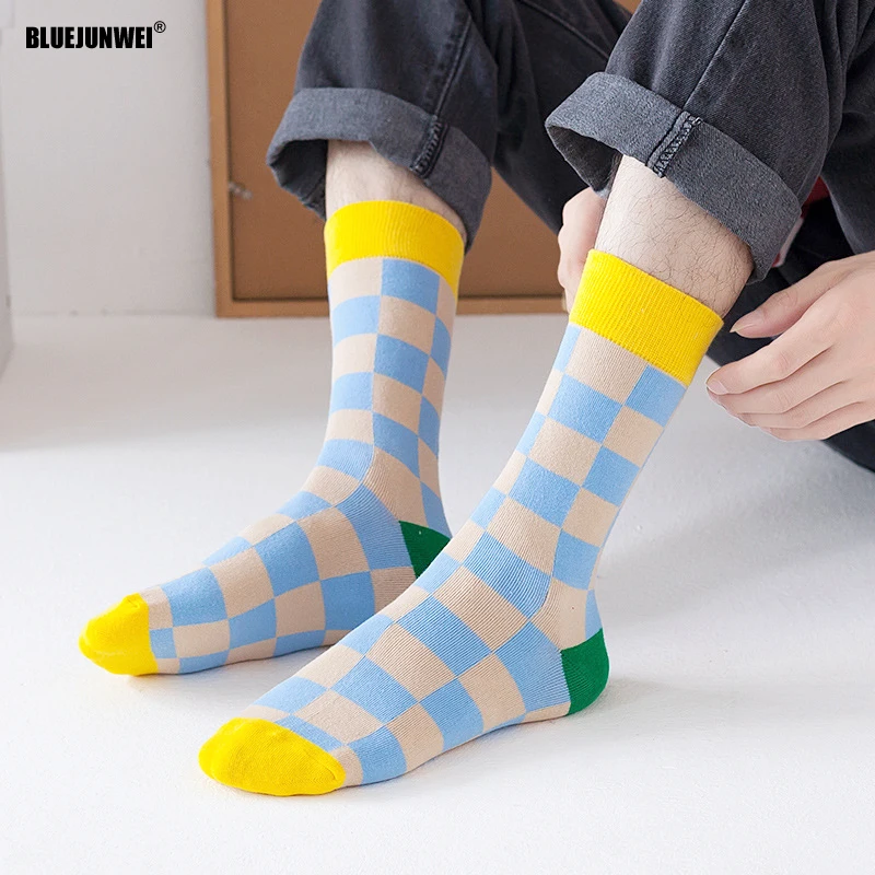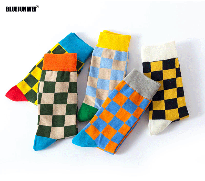 Носки мужскиеженские хлопковые, модные повседневные носки в разноцветную клетку, квадратные клетчатые, из чесаного хлопка, в подарочной коробке, 5 пар