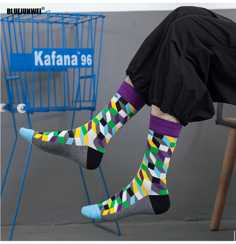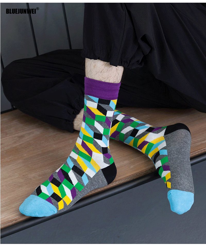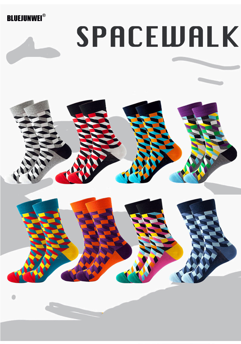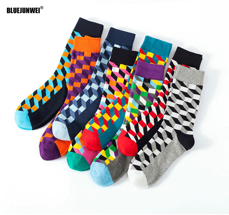 Носки мужскиеженские хлопковые, модные повседневные носки в разноцветную клетку, квадратные клетчатые, из чесаного хлопка, в подарочной коробке, 5 пар