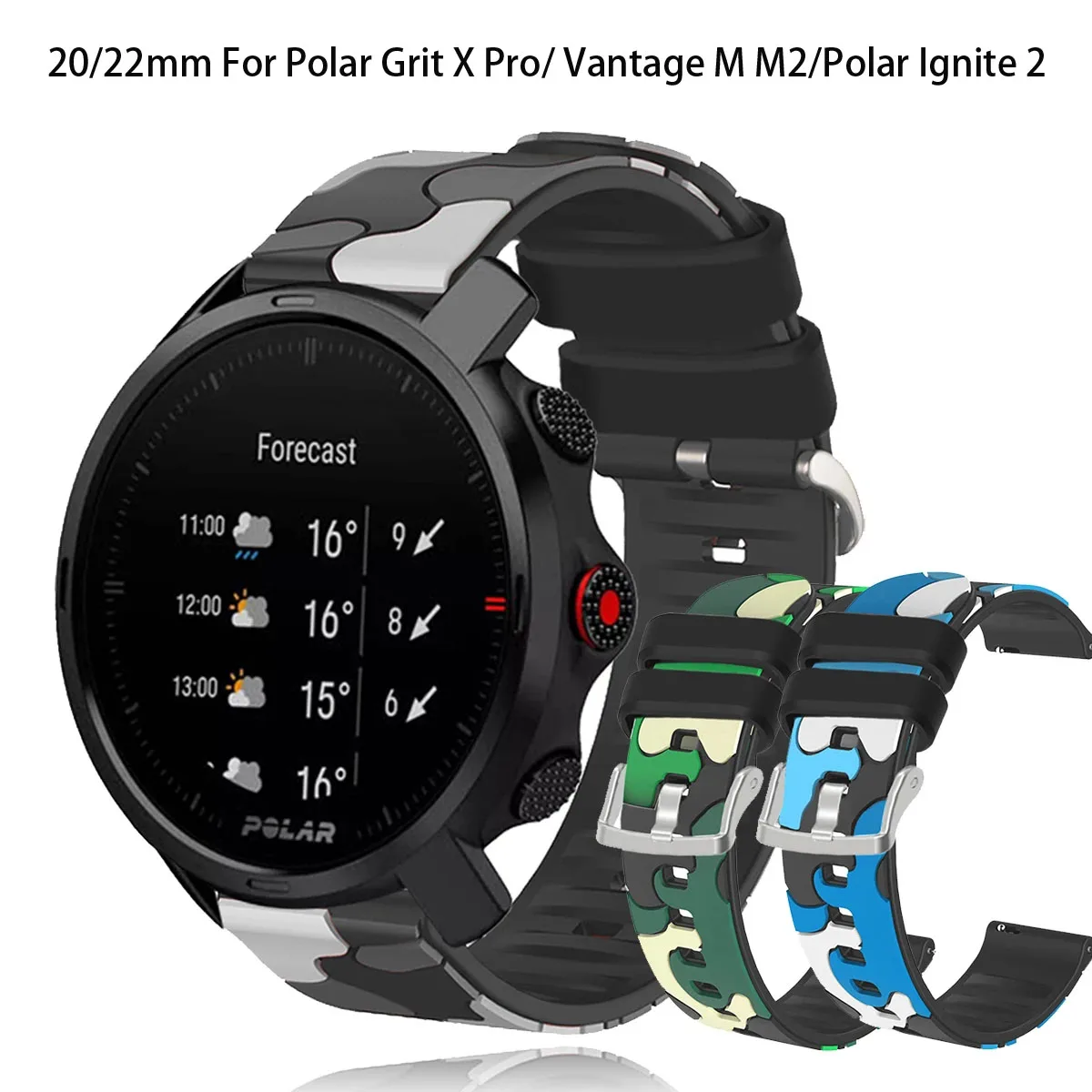 Камуфляжный ремешок для Polar Vantage M M2Ignite 2, силиконовый ремешок для Polar Grit X, сменный Браслет, дышащий браслет