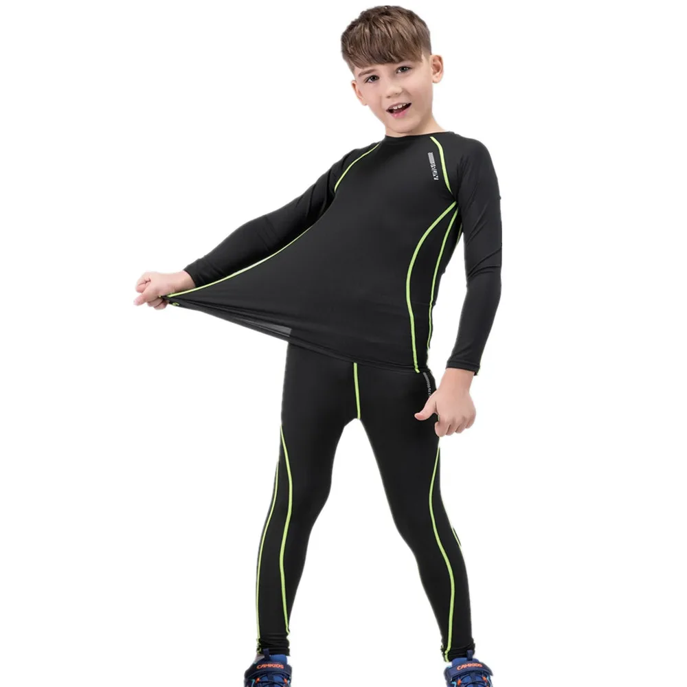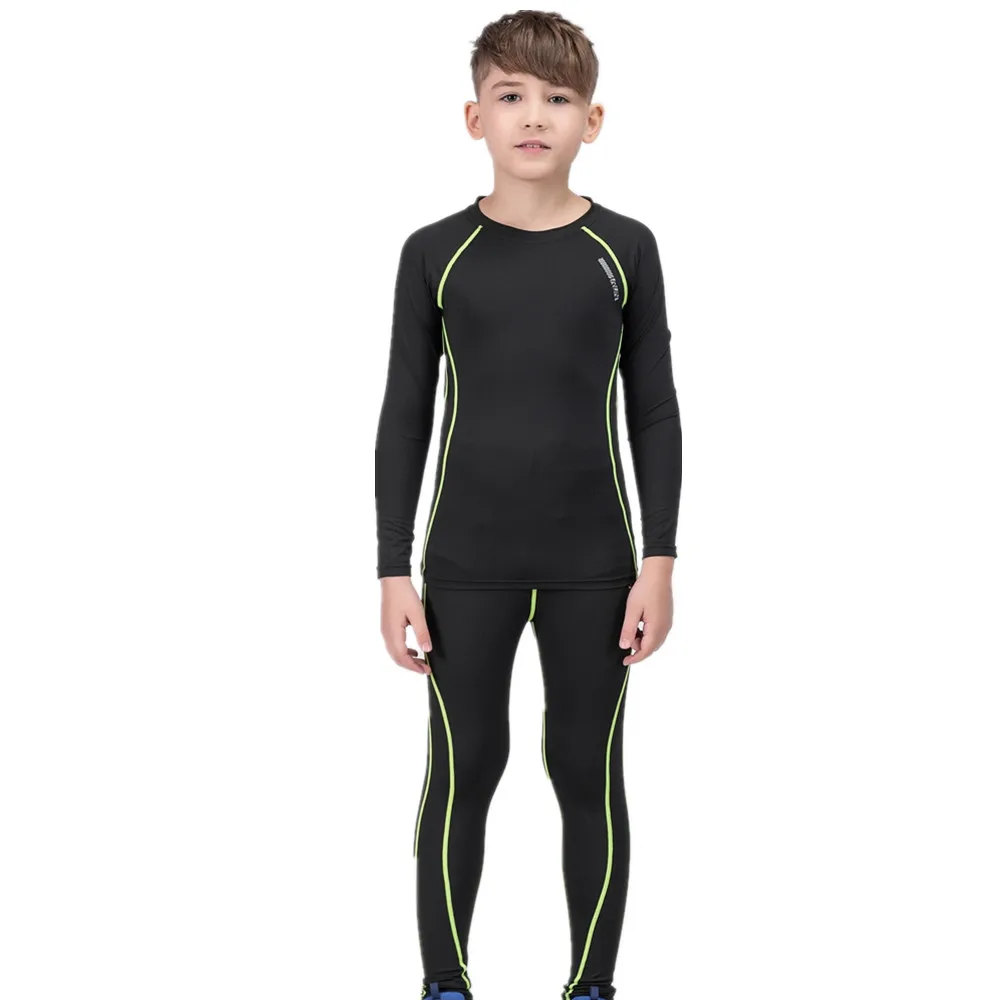 Спортивные Компрессионные Леггинсы и рубашки для мальчиков и девочек, базовый слой, комплект термобелья, штаны для бега, трико