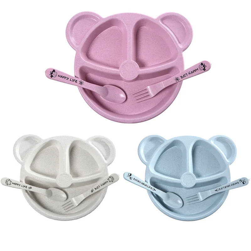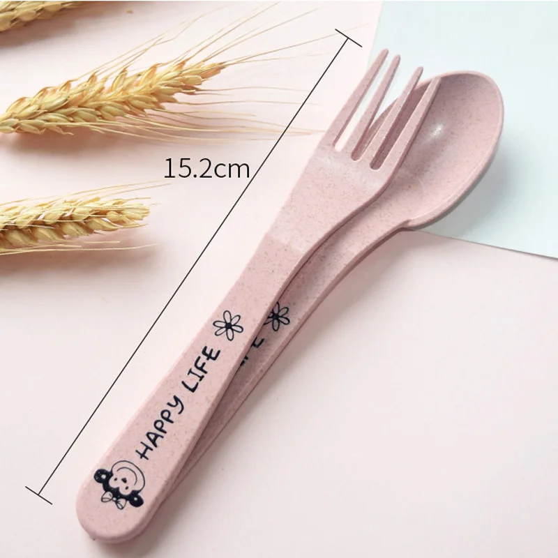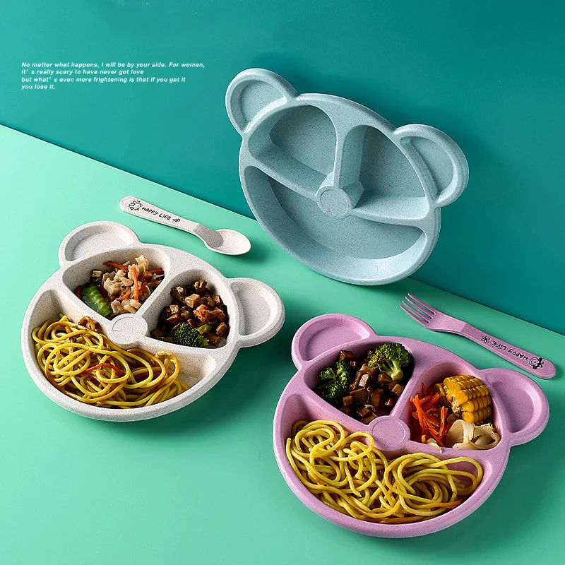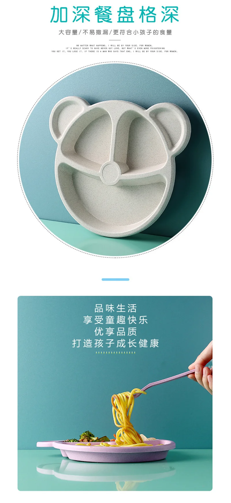Милая посуда из пшеничной соломы, набор посуды для кормления ребенка, детские блюда без бисфенола, детская обеденная тарелка, не Горячая Детская тренировочная чаша, ложка, вилка