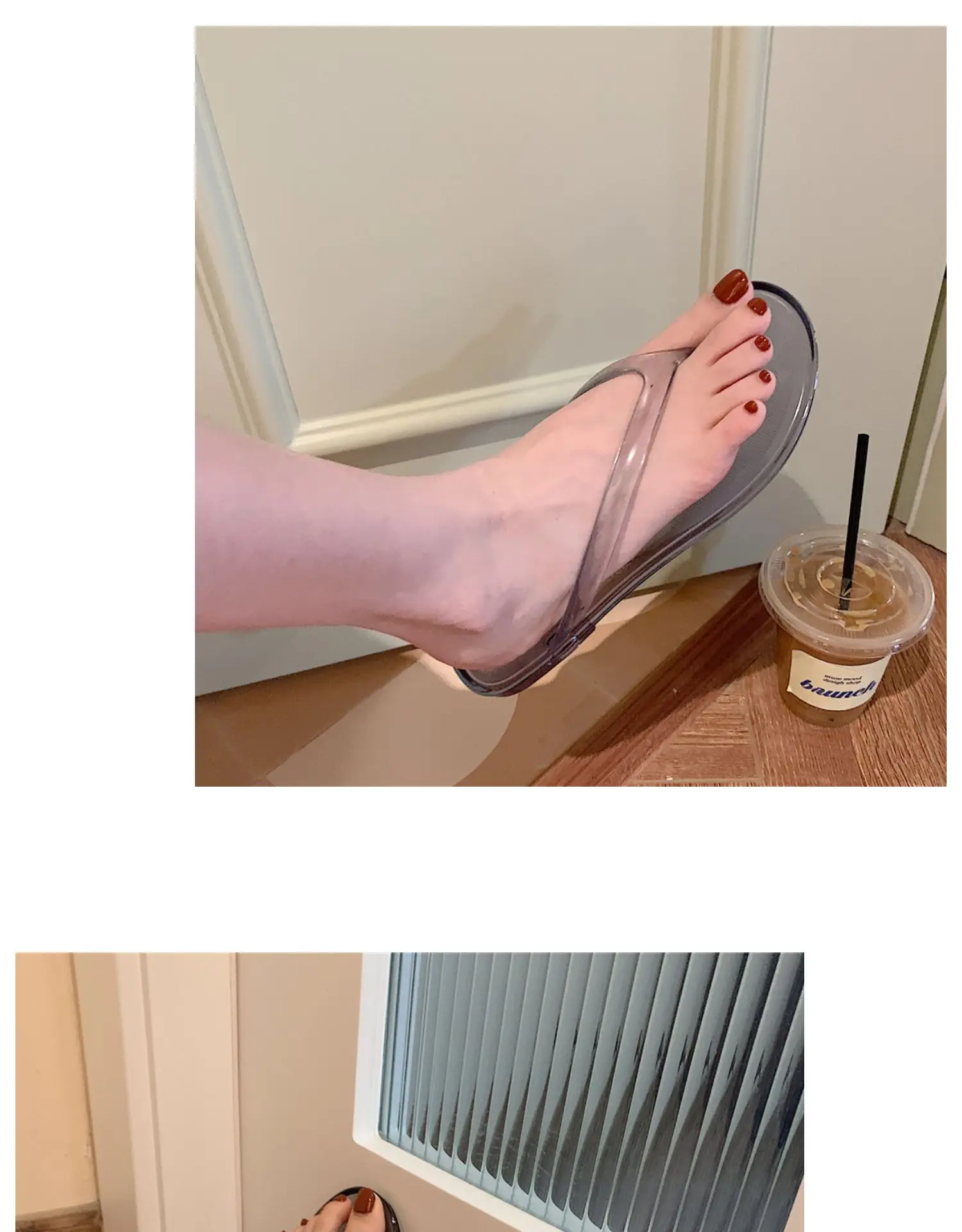 Вьетнамки; Женская обувь на плоской подошве; Прозрачная пляжная обу...