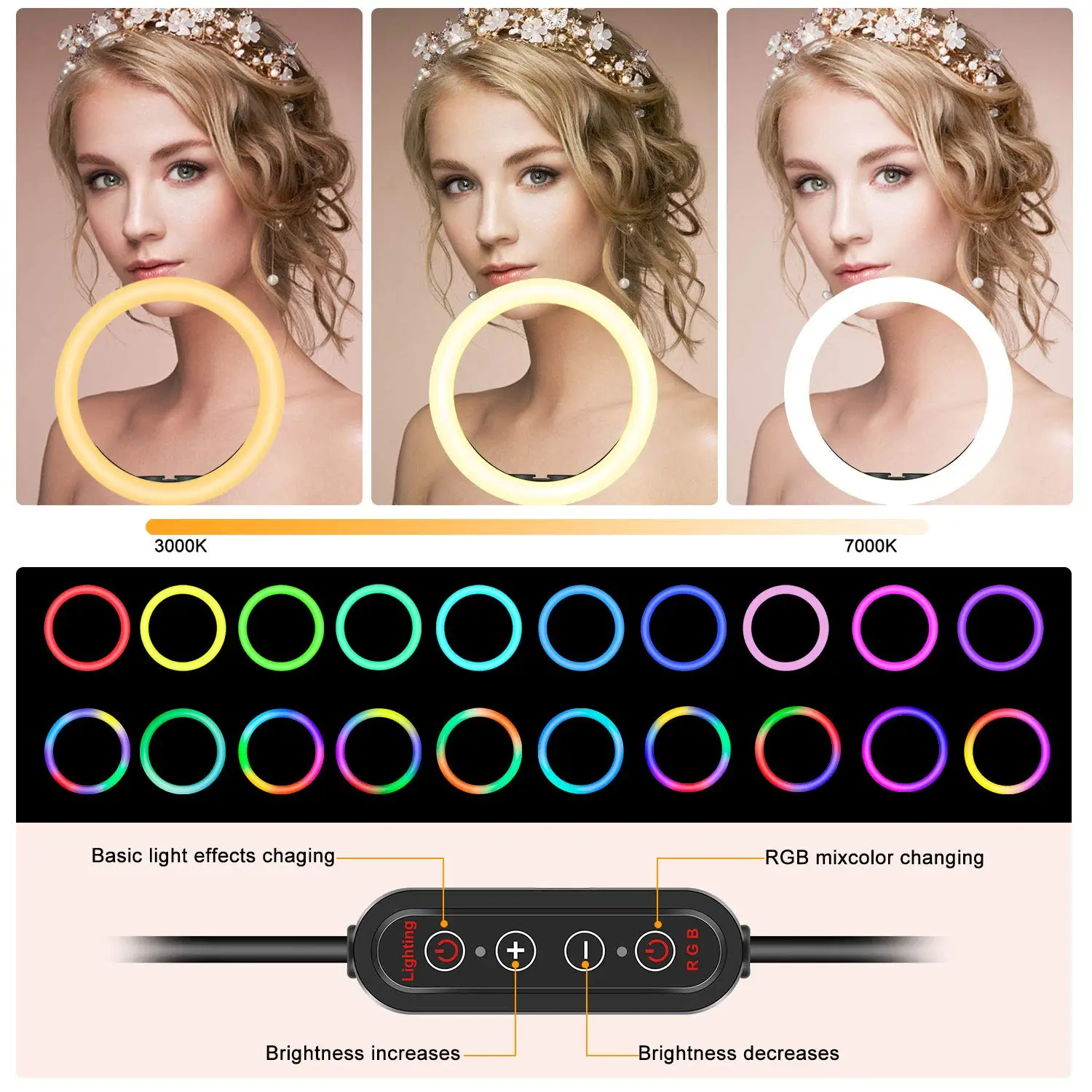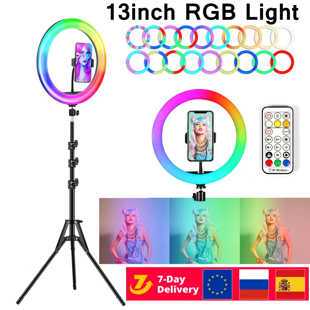 13 дюймов RGB кольцевой светильник со штативом для телефона светодиодный светильник с регулируемой яркостью для видеосъемки круглый кольцевой светильник для YouTube прямая трансляция