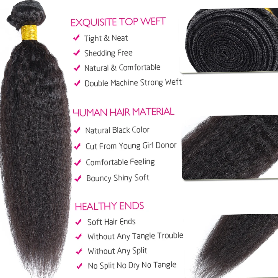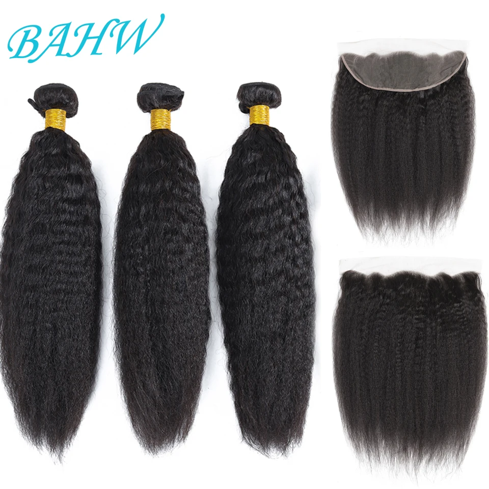 BAHW курчавые прямые человеческие волосы, пучки с фронтальной бразильской кутикулой, наращивание волос, натуральные черные пряди с 13X4 кружевной фронтальной