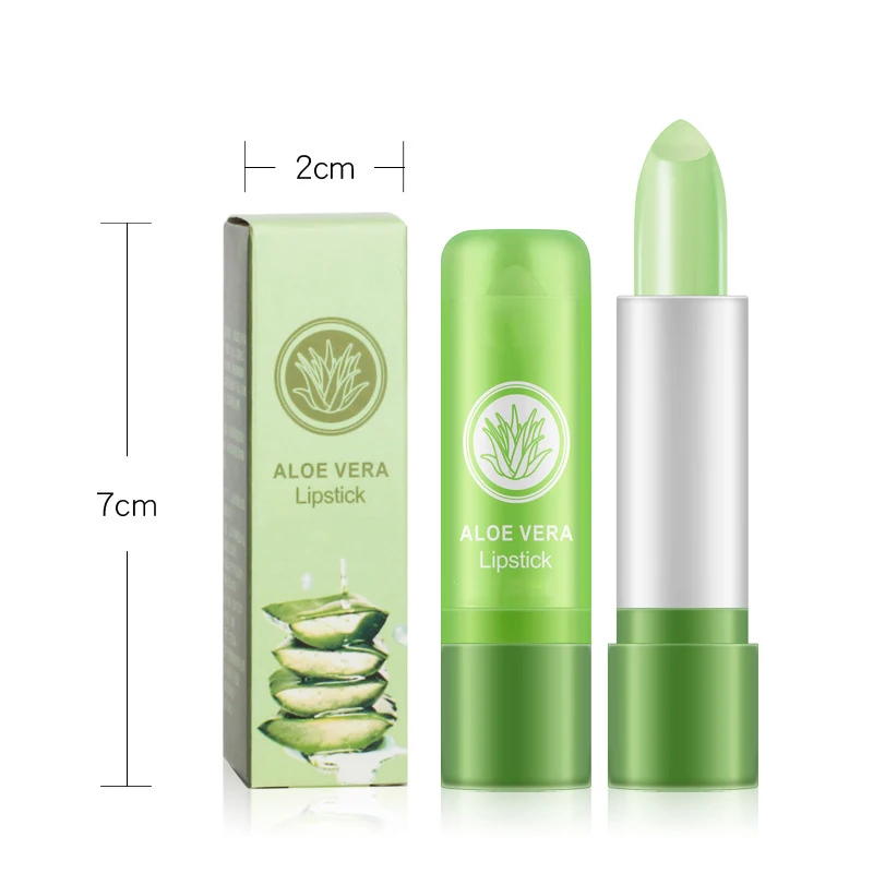Восстанавливающий бальзам для губ с изменением температуры алоэВысоконасыщенная увлажняющая 99% алоэ вера помада с изменением цветаПреимущество1. Трехмерное Увеличение губ2. Естественные изменения температуры3. Долговечный цвет4. Увлажняет губы