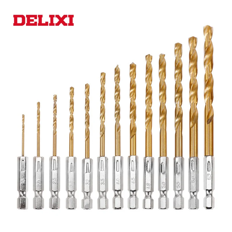 DELIXI 13 шт. Набор шестигранных Сверл с хвостовиком, титановое покрытие, высокоскоростная стальная штамповка, набор ручных инструментов, деревообрабатывающий инструмент