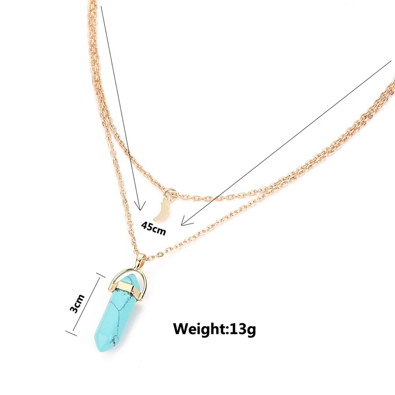 Feature 11Vintage Metal Chain Crescent Moon Light Blue Hexagonal Column Necklace