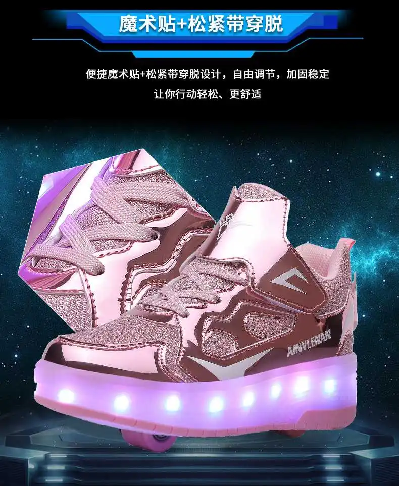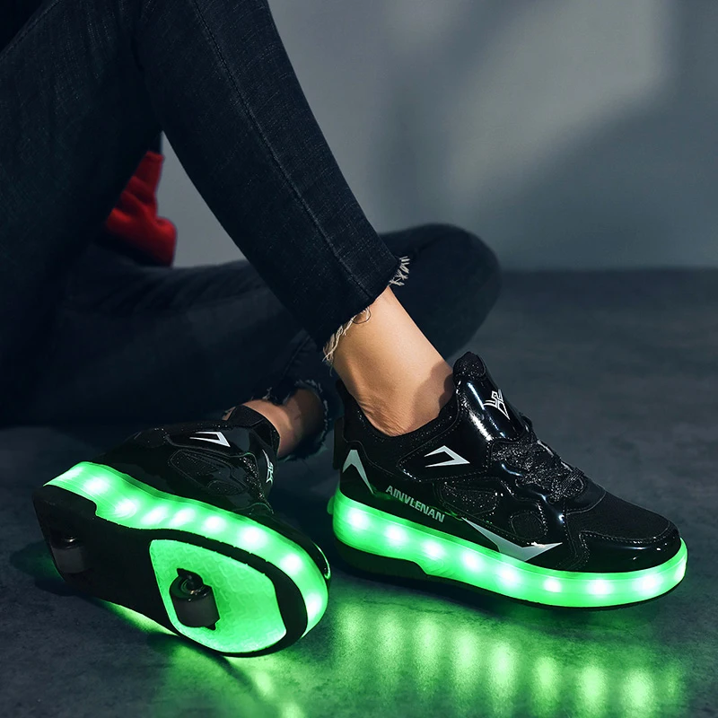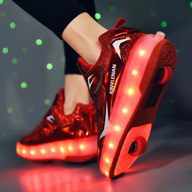 Кроссовки роликовые для мальчиков и девочек, повседневная обувь для катания на роликах, уличные спортивные со светодиодной подсветкой, 2 колеса, подарок для студентов, 2021